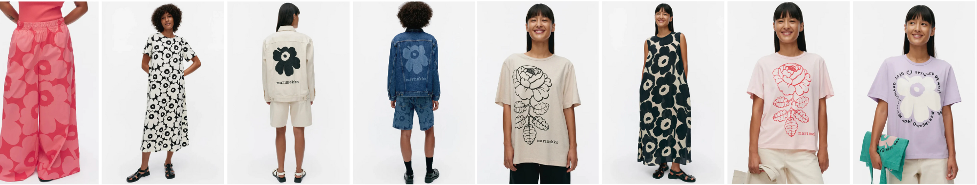Muodostamme joka sesonki oman kuratoidun valikoimamme Marimekon sesongin vaatteista, sekä halutuimmista carry-over malleista.