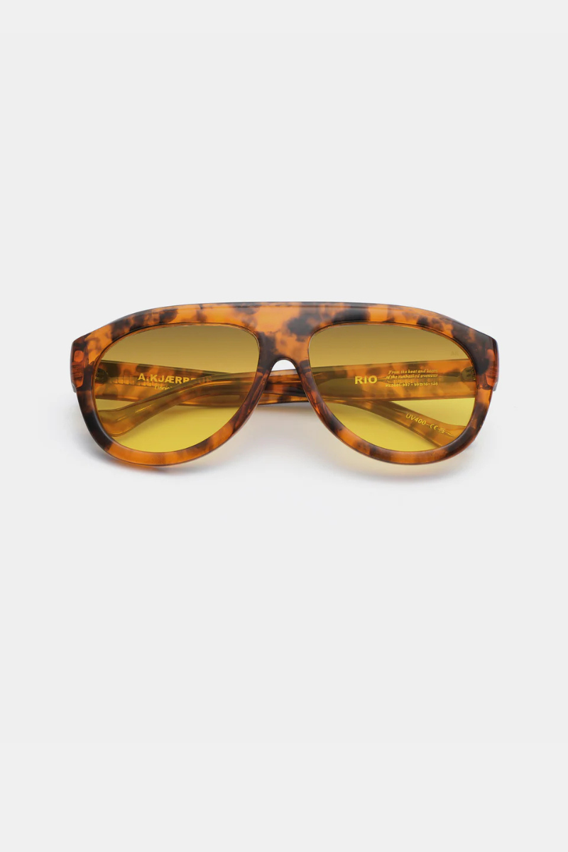 Rio on moderni tulkinta klassisesta aviator-mallista. Veistoksellinen kehys ja voimakas siluetti tekevät aurinkolasista näyttävän kokonaisuuden, jossa perinteinen muoto kohtaa nykyaikaisen designin. Syvä asetaattikehys tuo ilmeeseen skarppiutta.