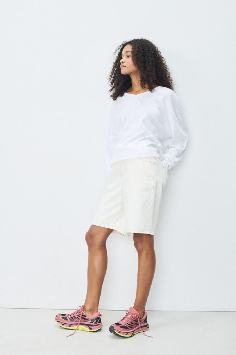 Ajaton ja mukava V-pääntiellä varustettu pitkähihainen paita American Vintagelta. Kevyt ja hengittävä kangas tekee paidasta täydellisen arjen luottovaatteen, jota on helppo yhdistellä niin farkkujen kuin suorien housujen kanssa.