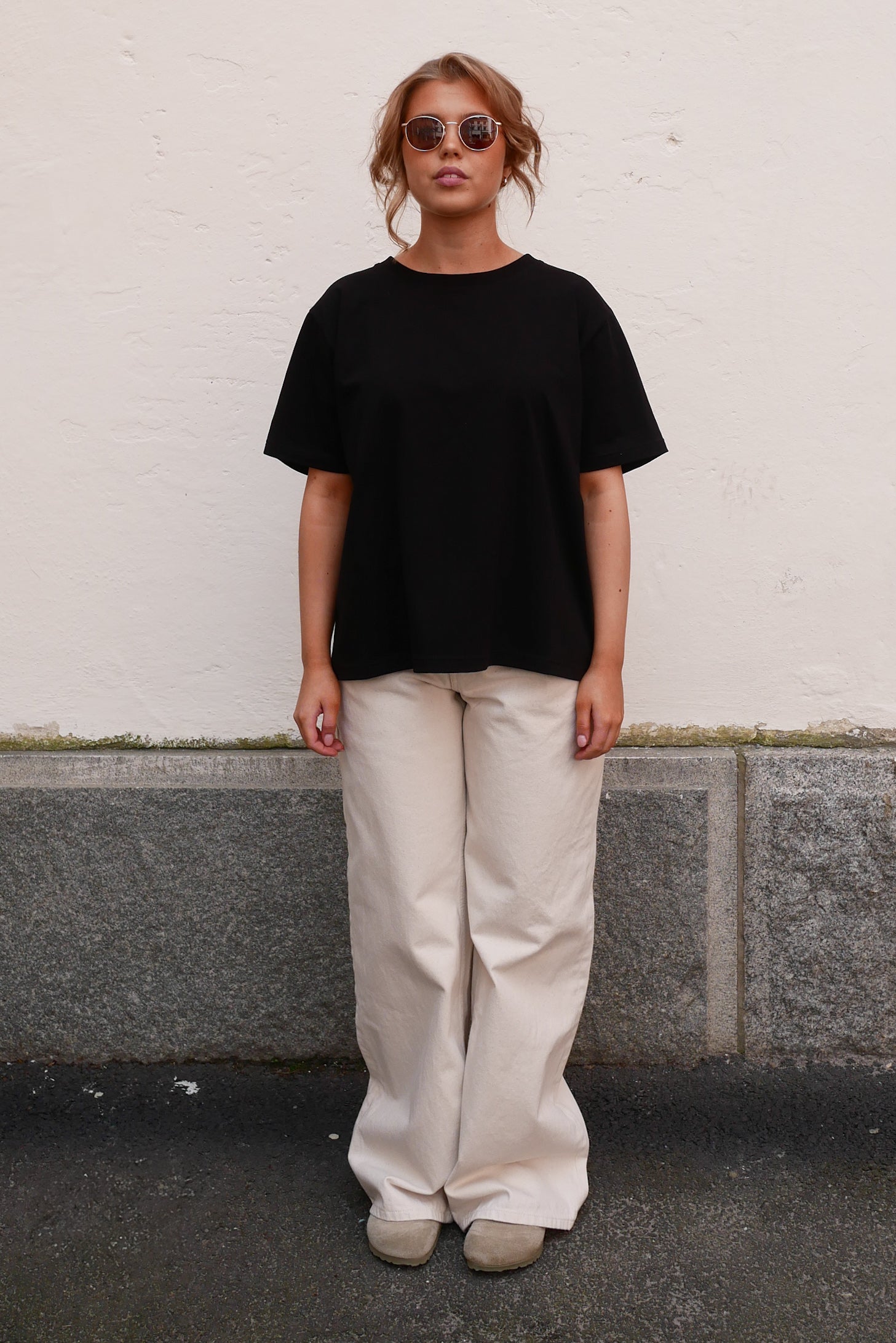 Seela on kehitetty Arelan ikonisesta, istuvasta Kim-t-paidasta ihanan rennoksi oversize fitiksi. Korkealaatuinen turkkilainen puuvilla-elastaanineulos toimii väljän istuvuuden kanssa täydellisesti yhteen. Paita on paksusta neuloksesta huolimatta miellyttävän kepeä päällä ja laskeutuu nätisti.
