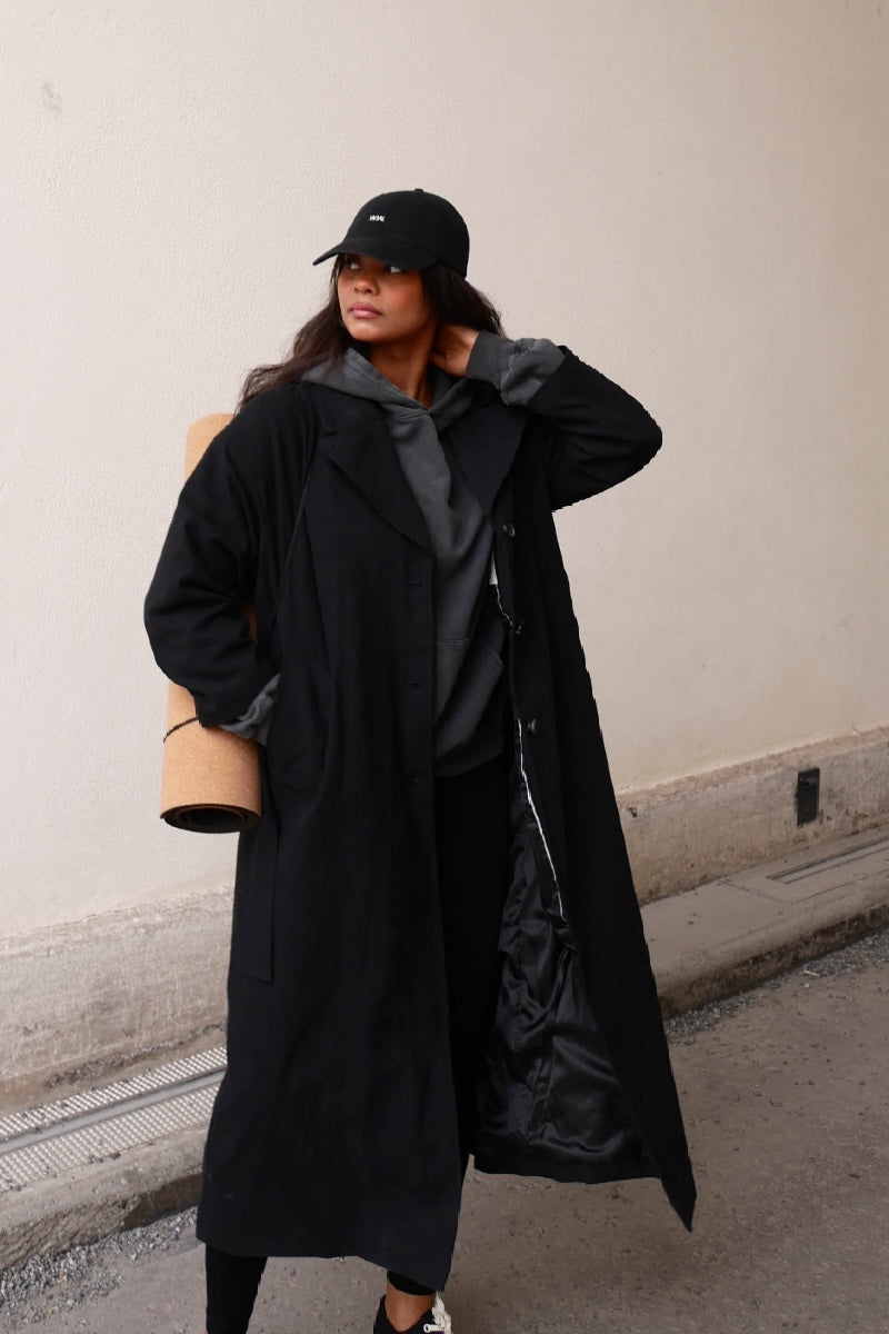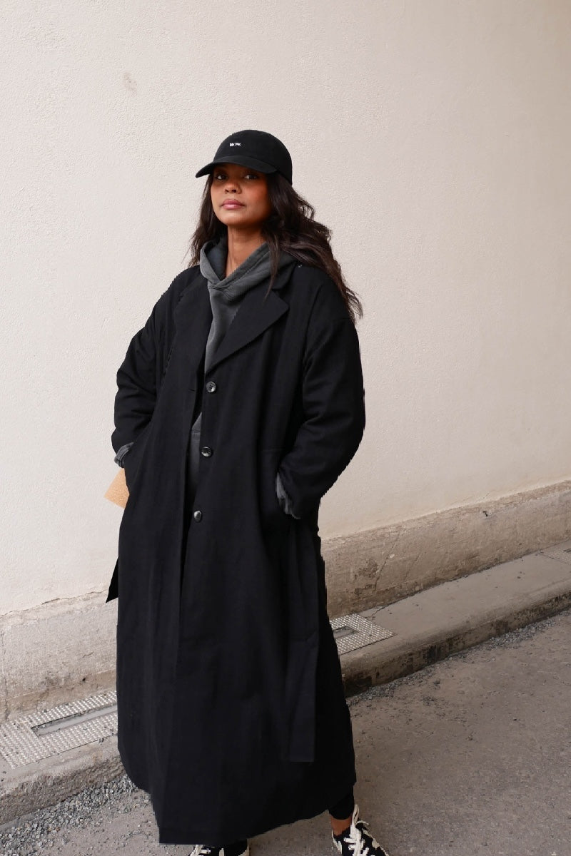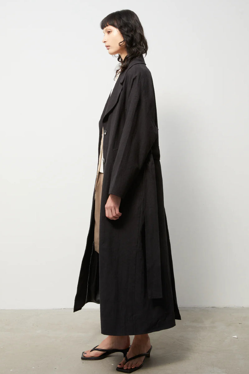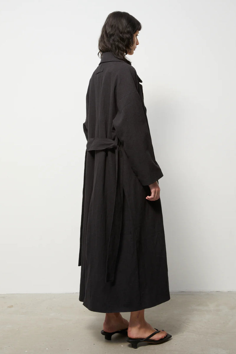Oversize patterned linen jacket from Brixtol Textiles. Made from a rich linen-cotton blend that has been washed soft. Stylish and generous collar, buttons on the front and a belt at the waist.