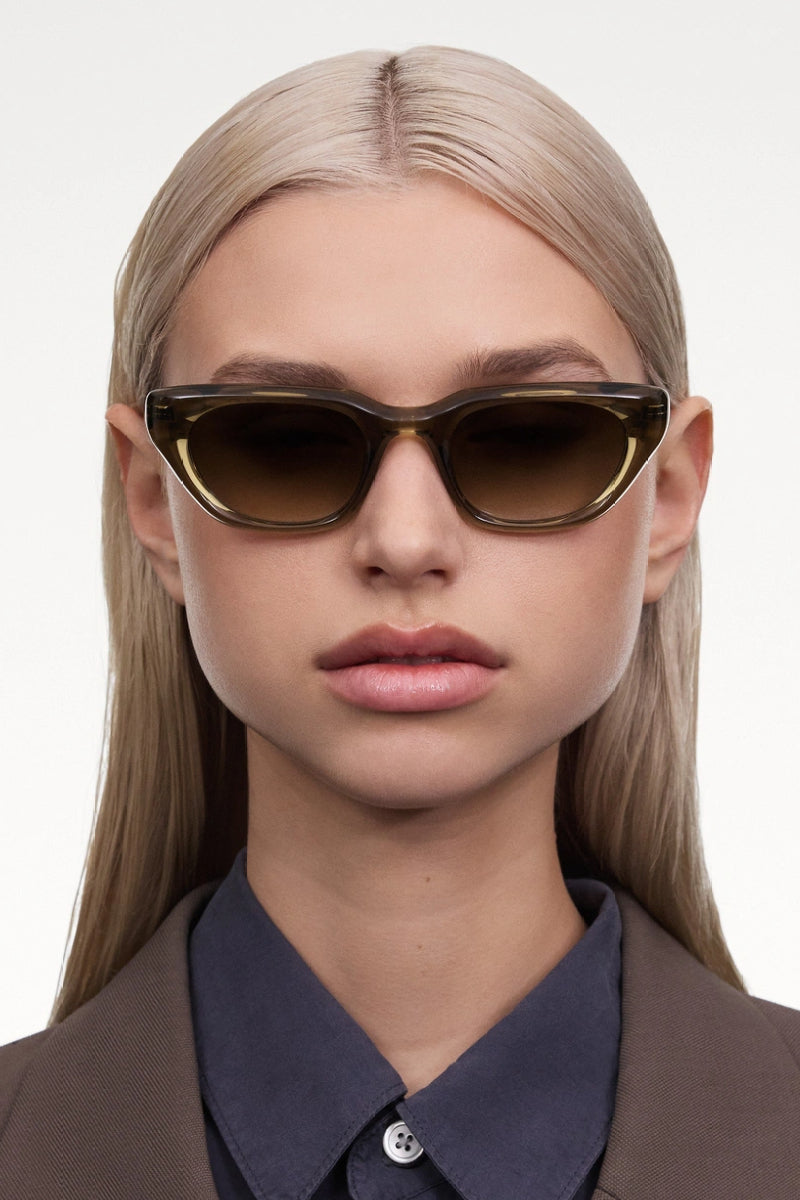 Virtaviivainen cat eye -kehys kulmikkaalla siluetilla on ajattoman suosikin moderni tulkinta. Kehys on valmistettu Acetate Renew™ -materiaalista joka on vastuullinen yhdistelmä biopohjaisia ja sertifioituja kierrätysmateriaaleja. Käsityönä valmistettu kehys tarjoaa kestävän ja joustavan istuvuuden joka mukautuu käyttäjän tarpeisiin.