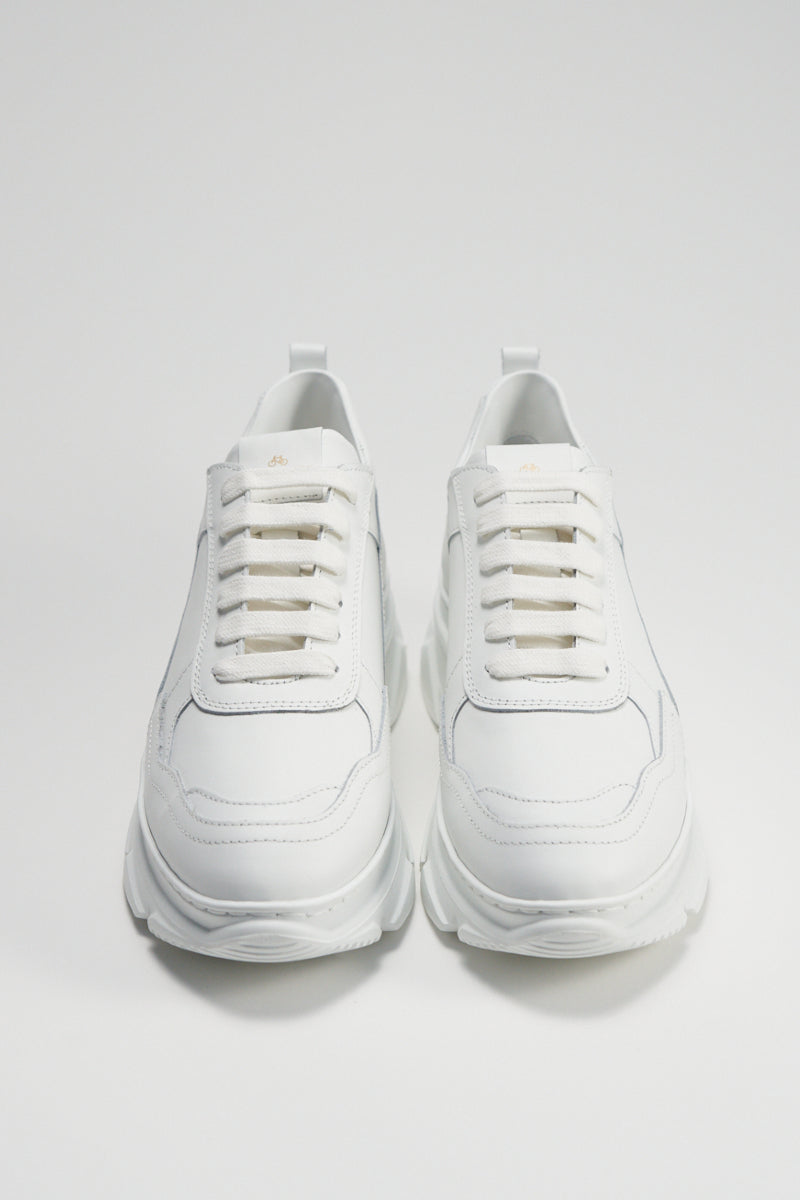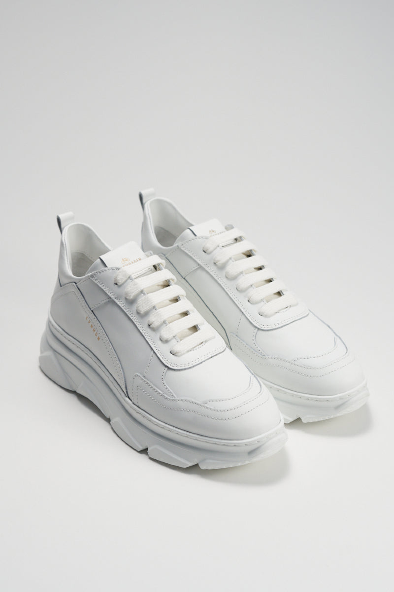 Great chunky sneakers from Copenhagen Studios. The material is wonderfully smooth and off-white leather. Leather lined interior. Embossed brand logo on the side of the shoe. Combine shoes with outfits to create a stylish and comfortable outfit.