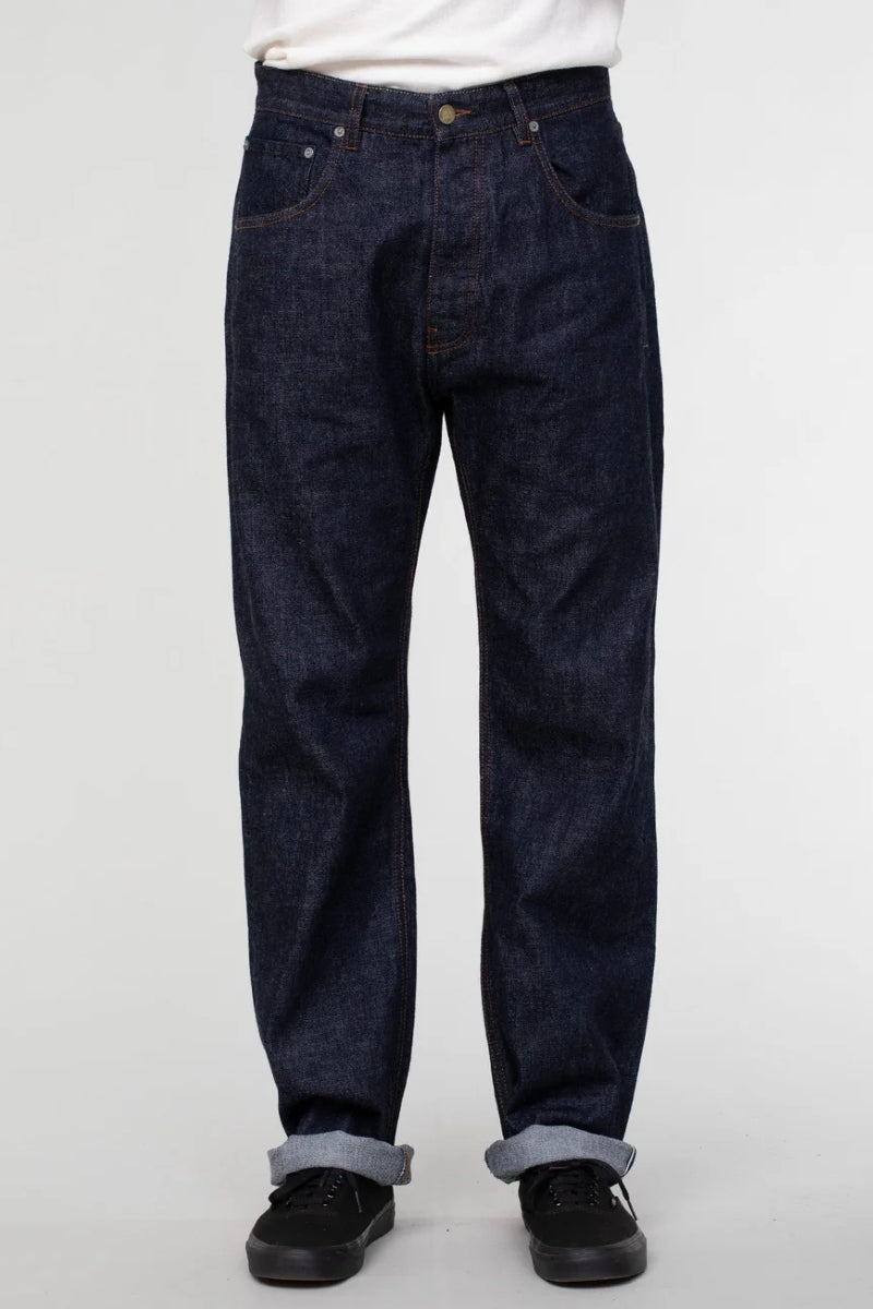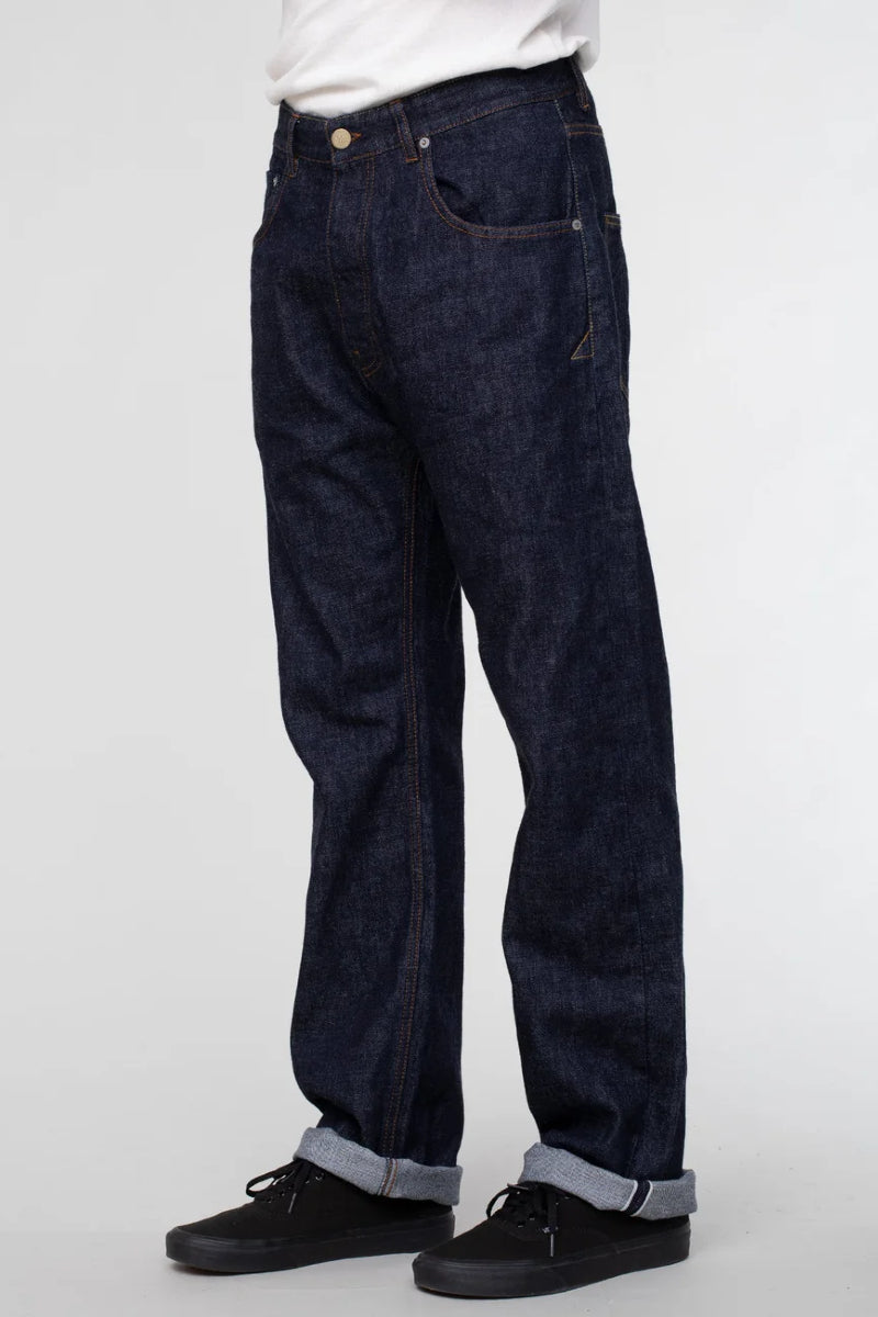 Farkut on valmistettu paksusta 14-unssisesta japanilaisesta Onewash Selvedge-denimistä, joka on tunnettu kestävyydestään ja upeasta indigonsinisestä sävystään. Indigo on kiinnitetty kasviöljytekniikalla jonka ansiosta väri pysyy syvän tummansinisenä pitkään ahkerasta pesusta huolimatta.