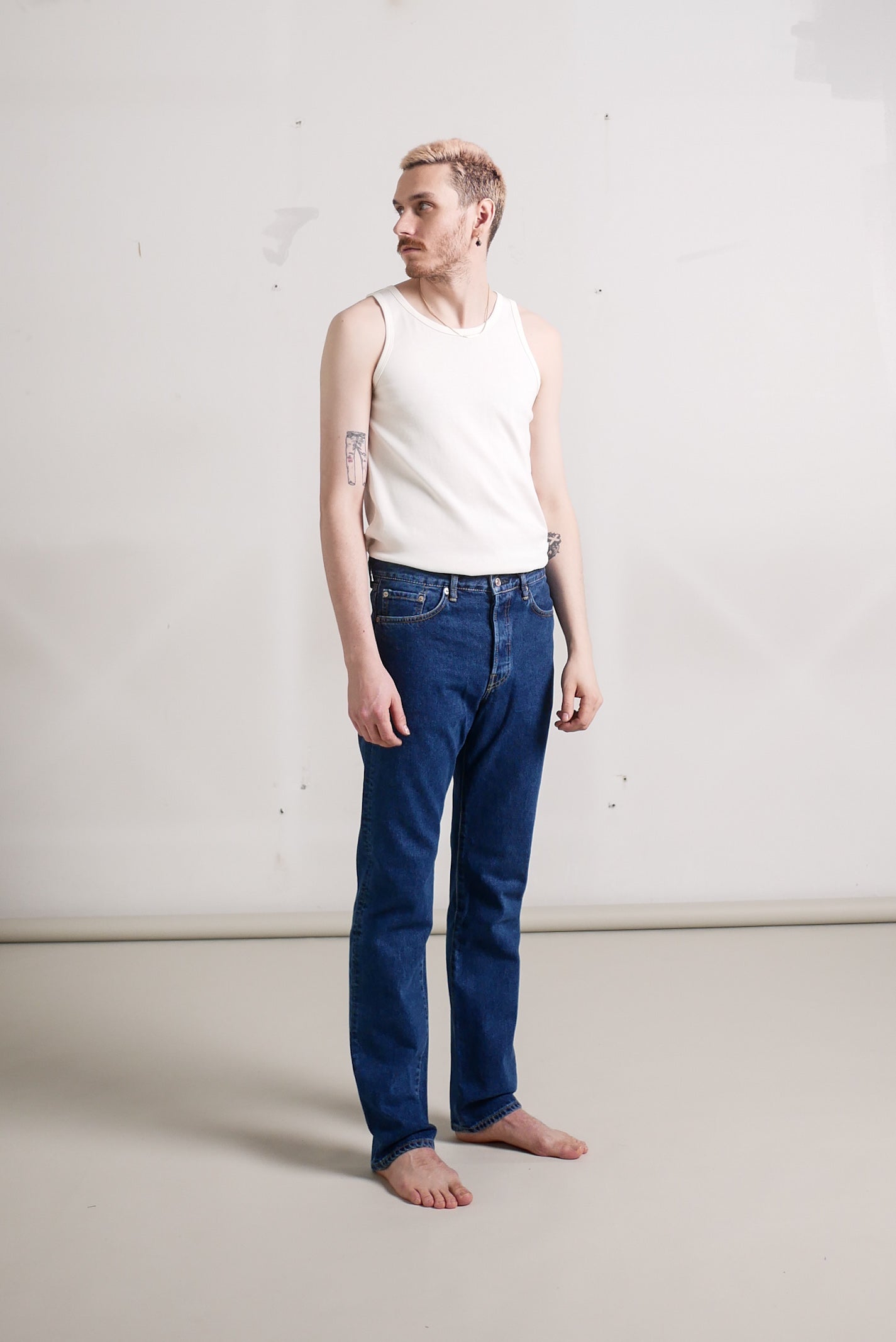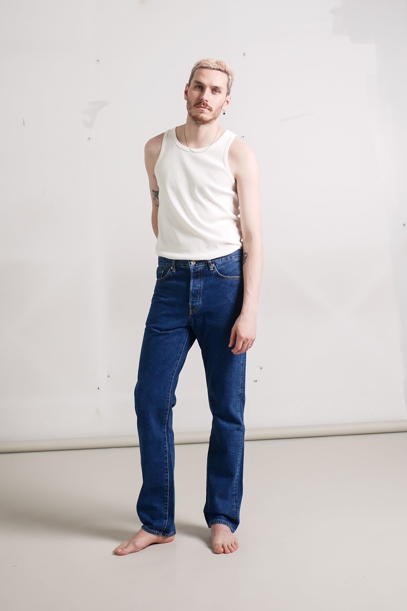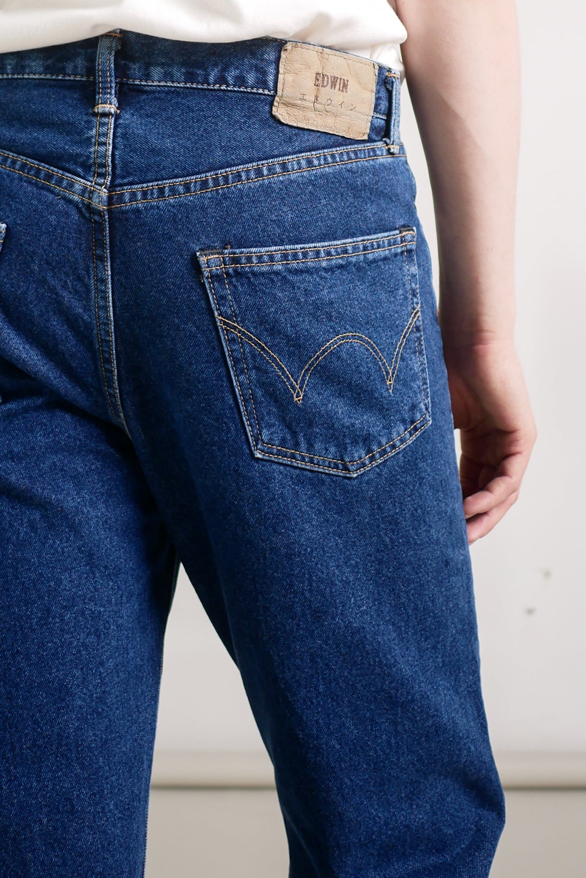 Edwinin suora farkkumalli klassisessa keskisinisessä pesussa. Farkuissa hieman väljä, suora puntti, korkea vyötärö sekä nappisepalus. Valmistettu 12,5-unssisesta Kaihara Pure Indigo opened -denimkankaasta.
