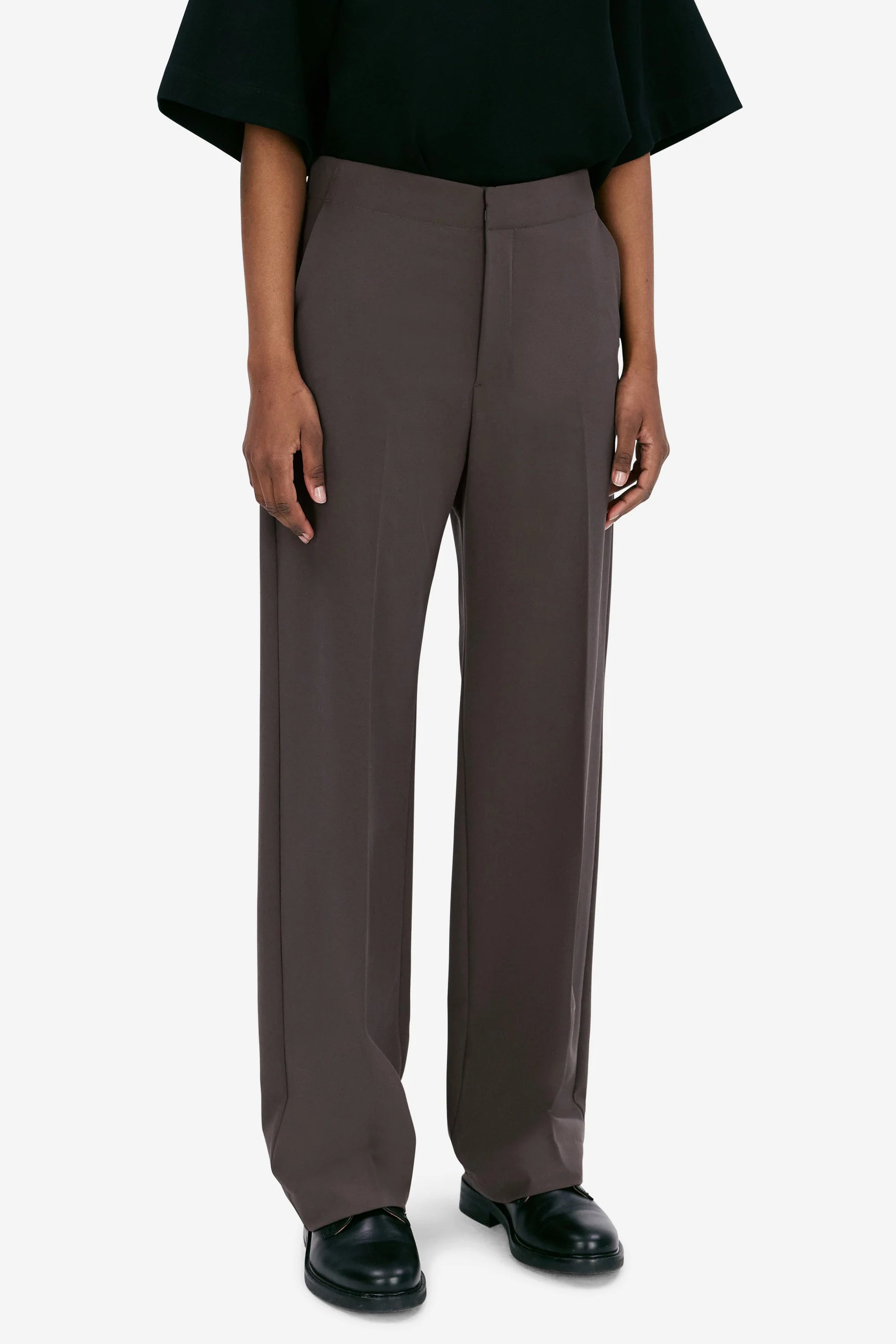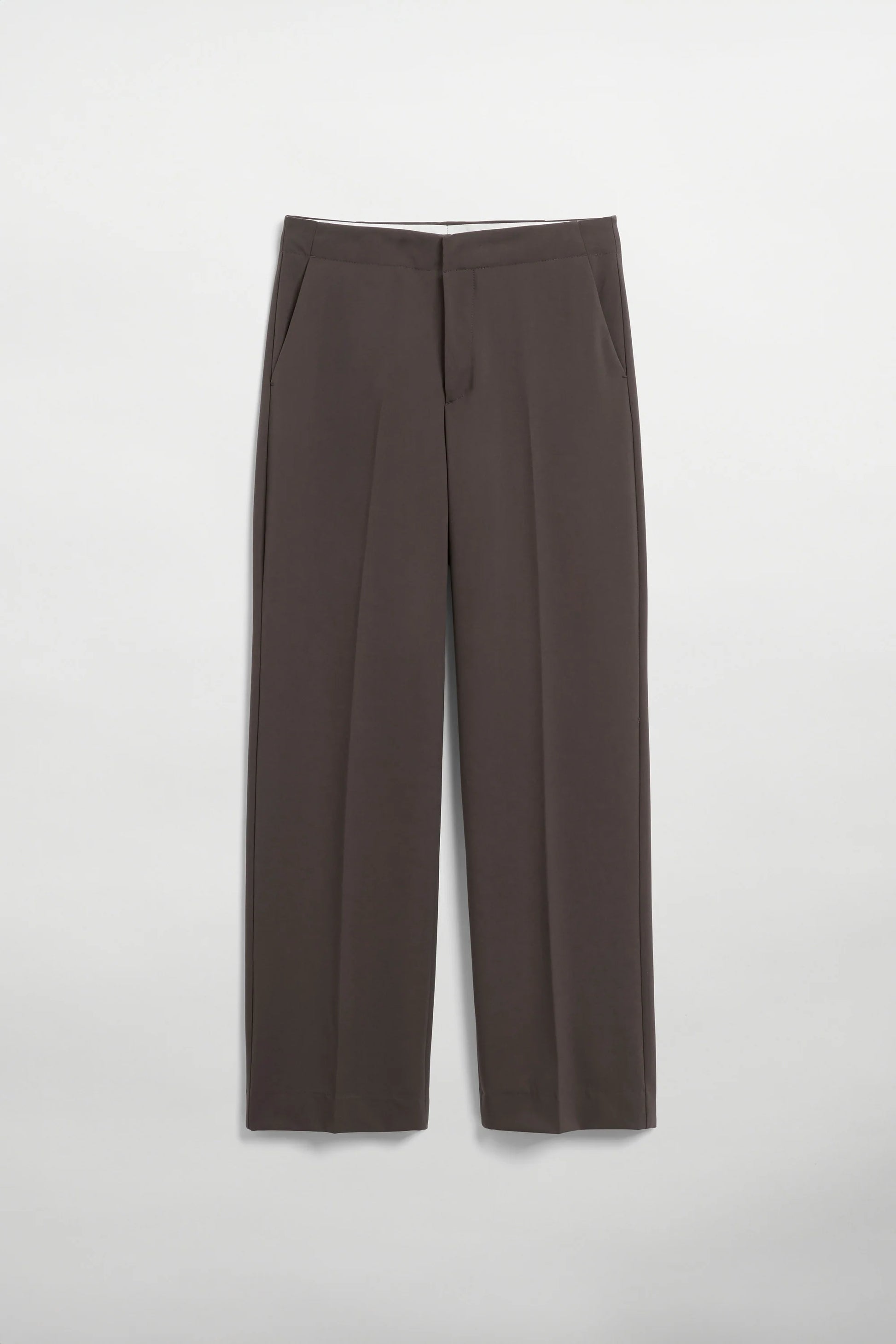 Mustat suoralahkeiset housut ruotsalaiselta Elvineltä. Materiaalina on käytetty Light Flex -kangasta joka on kauniisti laskeutuvaa ja luo housuihin siistin yleisilmeen. Yksityiskohtina ovat keskellä prässit edessä ja takana, vinot etutaskut ja kaksi takataskua.