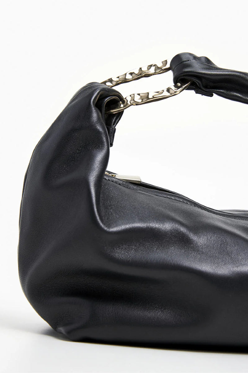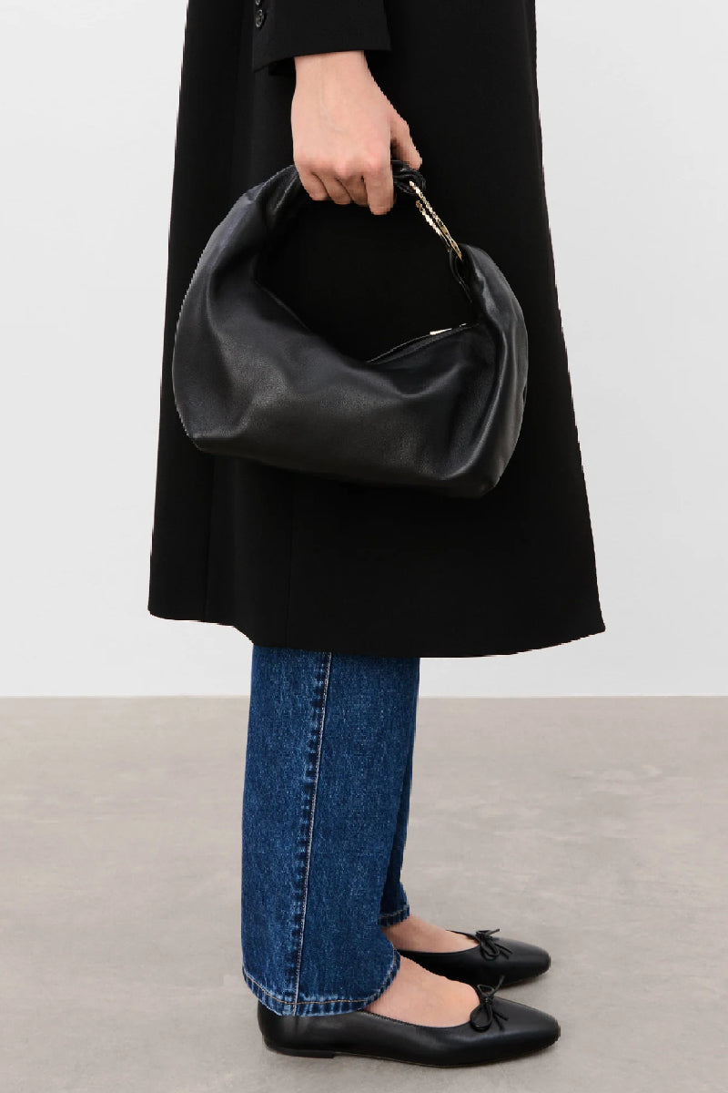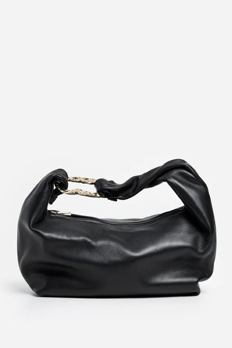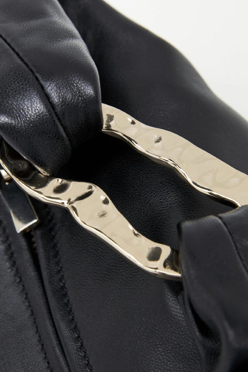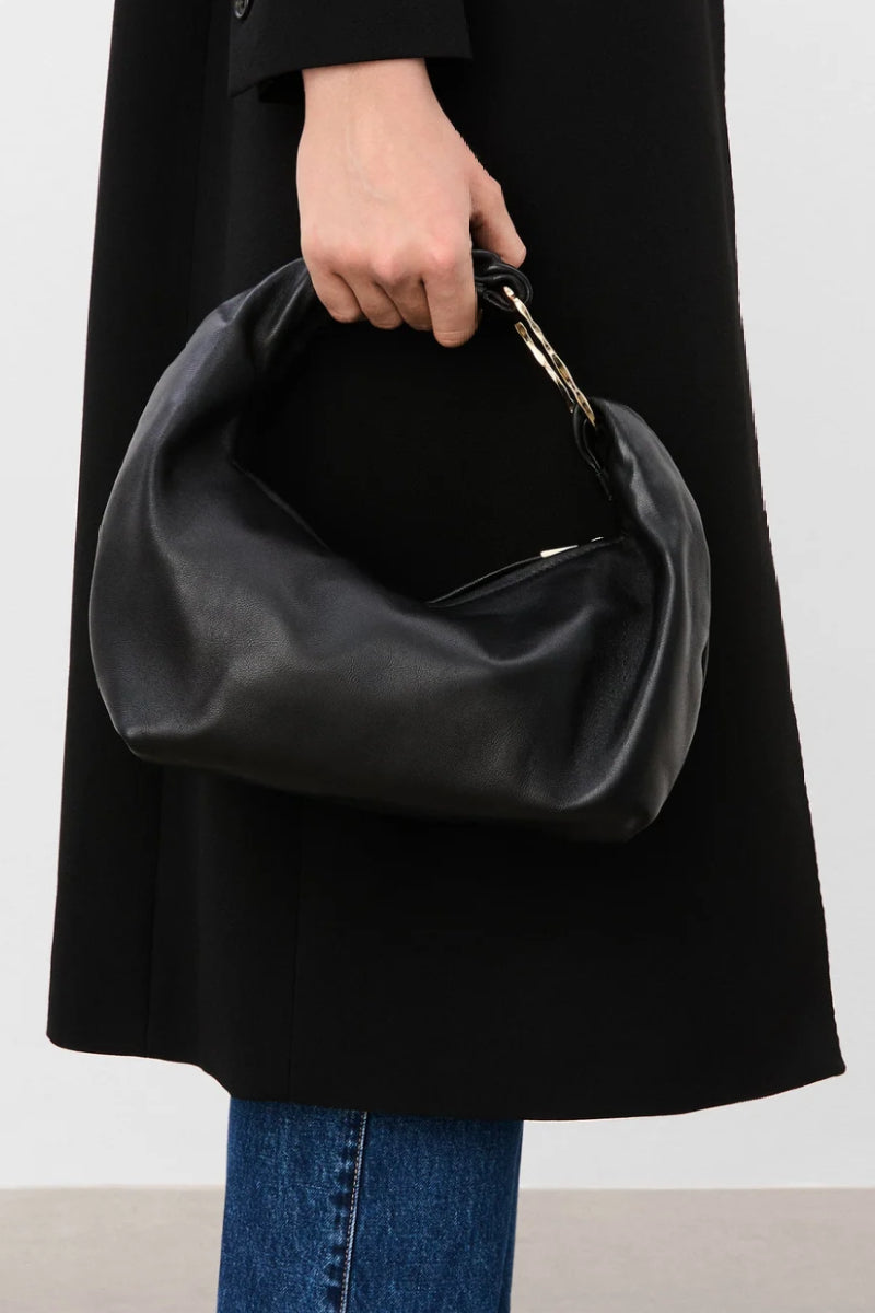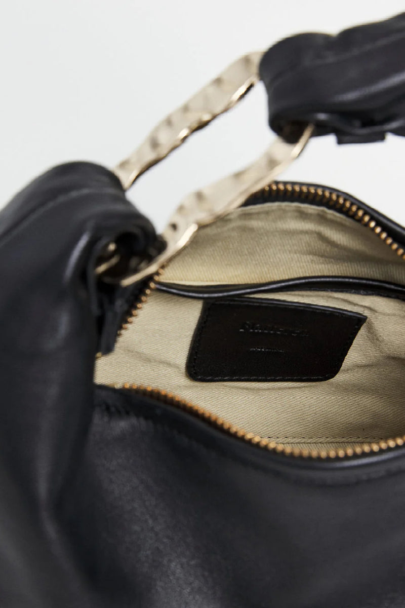 Italiassa käsityönä valmistettu nahkalaukku ruotsalaiselta Flatteredilta. Yksityiskohtana upea epäsäännöllisesti kuvioitu solki kahvassa joka luo yksinkertaiseen kokonaisuuteen ylellisen ilmeen. Laadukkaasta lampaannahasta valmistetussa laukussa on puuvillainen vuori, yksi sisätasku ja vetoketjusuljenta.