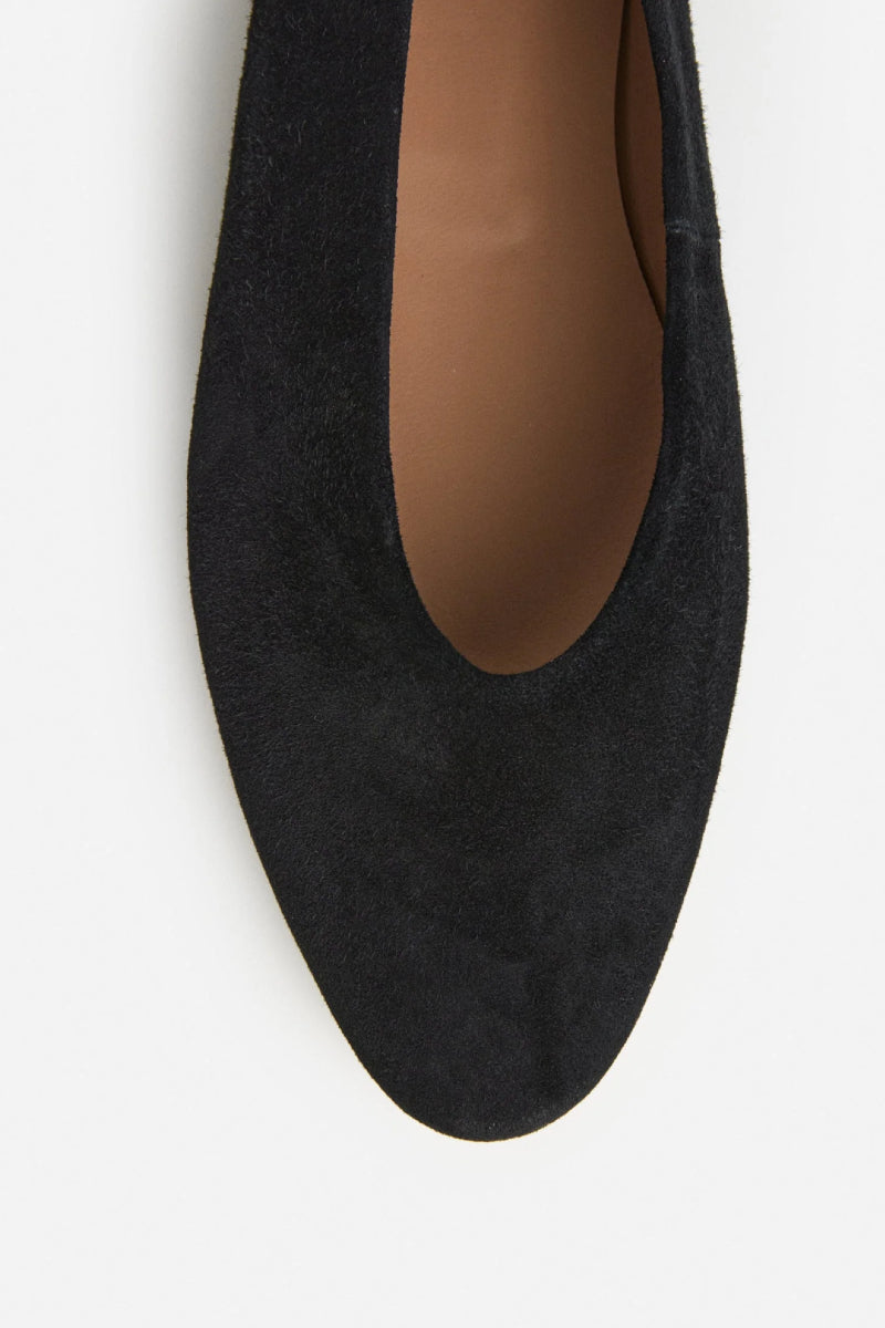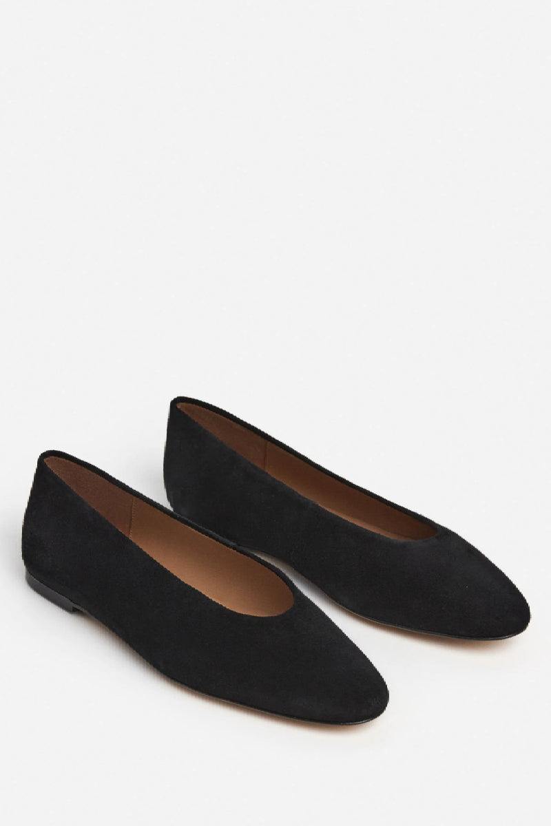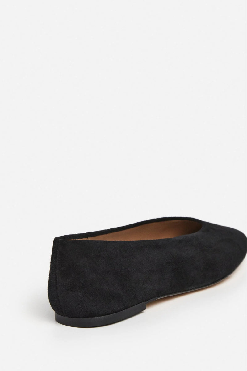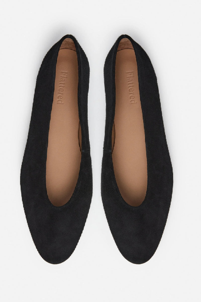 Mustat mokkanahkaiset ballerinat Flatteredilta. Elchessä, Espanjassa valmistetut ballerinat on valmistettu laadukkaasta vuohennahasta, joka tuntuu pehmeältä ja mukautuu jalkaan kauniisti. Kestävässä Thunit-ulkopohjassa on hyvä pito.