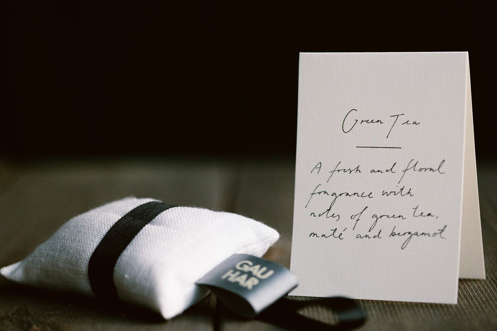 The popular Finnish Gauhar linen perfume bag. The bag is filled with green tea-scented mineral crystals, which bind the scent to itself for a long time. Can be used, for example, as a scent in the wardrobe, bathroom or car. Made in France. By massaging the mineral crystals, you can easily reactivate the scent.