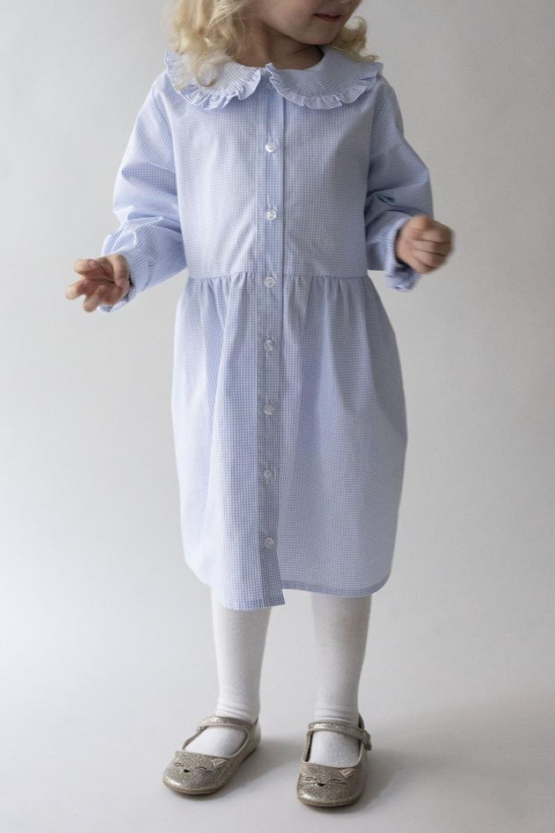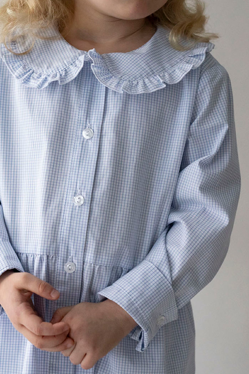 Captivatingly sweet children's shirt dress from home brand Gauhar in a blue and white check pattern.