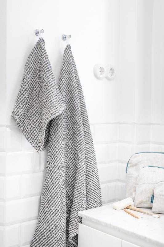 A high-quality waffle towel from Finland's Gauhar. Made from a blend of linen and cotton, which is pleasantly soft and absorbent. Thanks to its light material, the towel dries quickly and is also easy to pack. The waffle surface creates variety and freshness in the bathroom textiles. Made in Lithuania.
