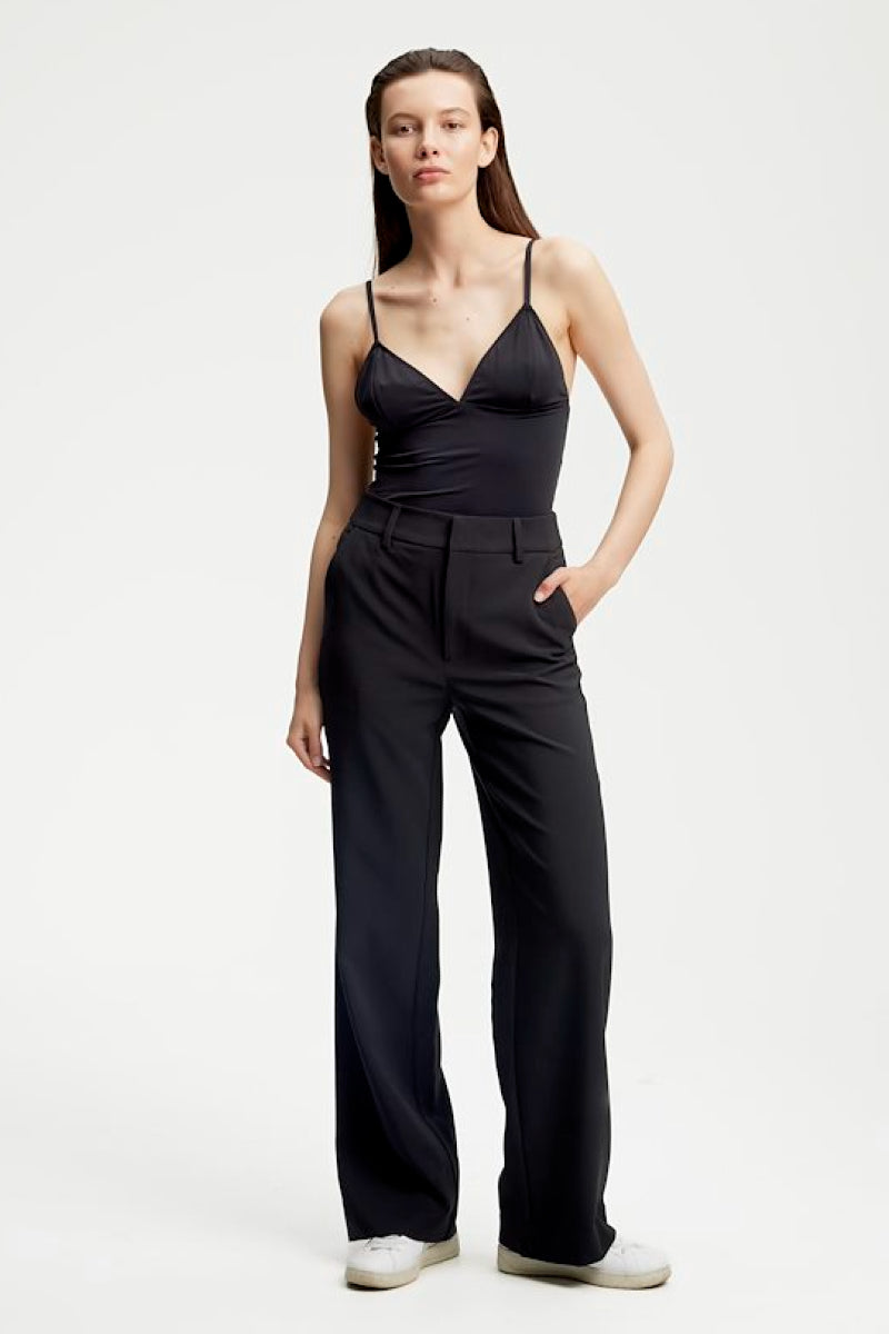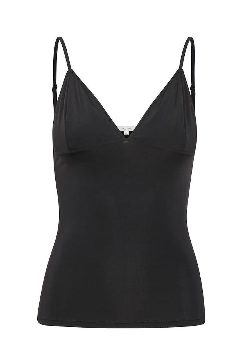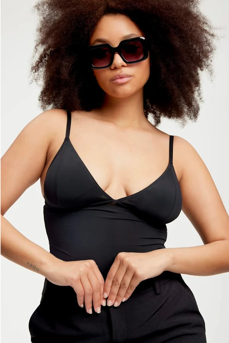 A versatile black top with a feminine neckline. Suitable as an undershirt or as such under, for example, an oversize blazer. The material is a nylon blend that feels pleasant on the skin.