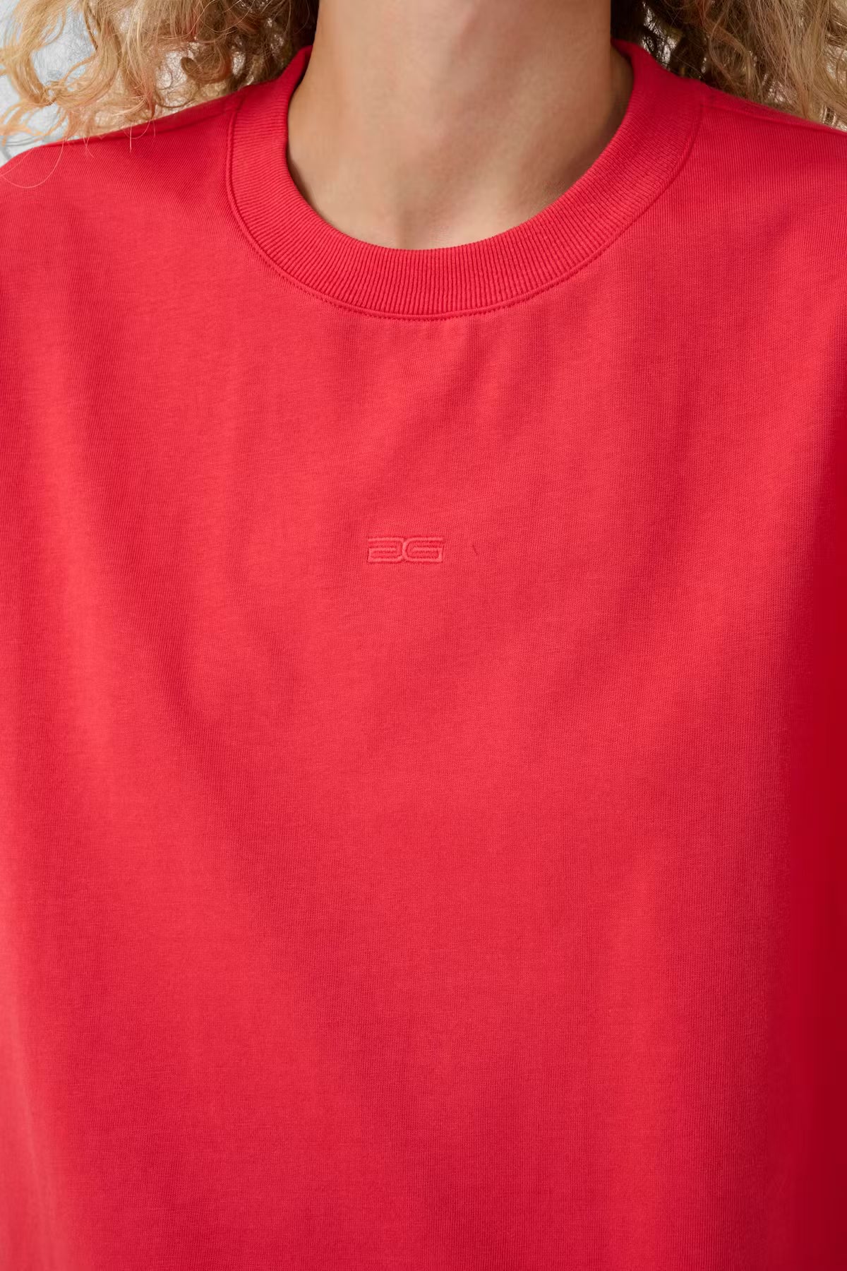 Tyylikäs ja rento oversized t-paita Gestuzilta. Väljä istuvuus takaa mukavuuden ja klassinen pyöreä pääntie sekä keskipitkät hihat tekevät mallista ajattoman. Rinnassa minimalistinen brodeeraus.