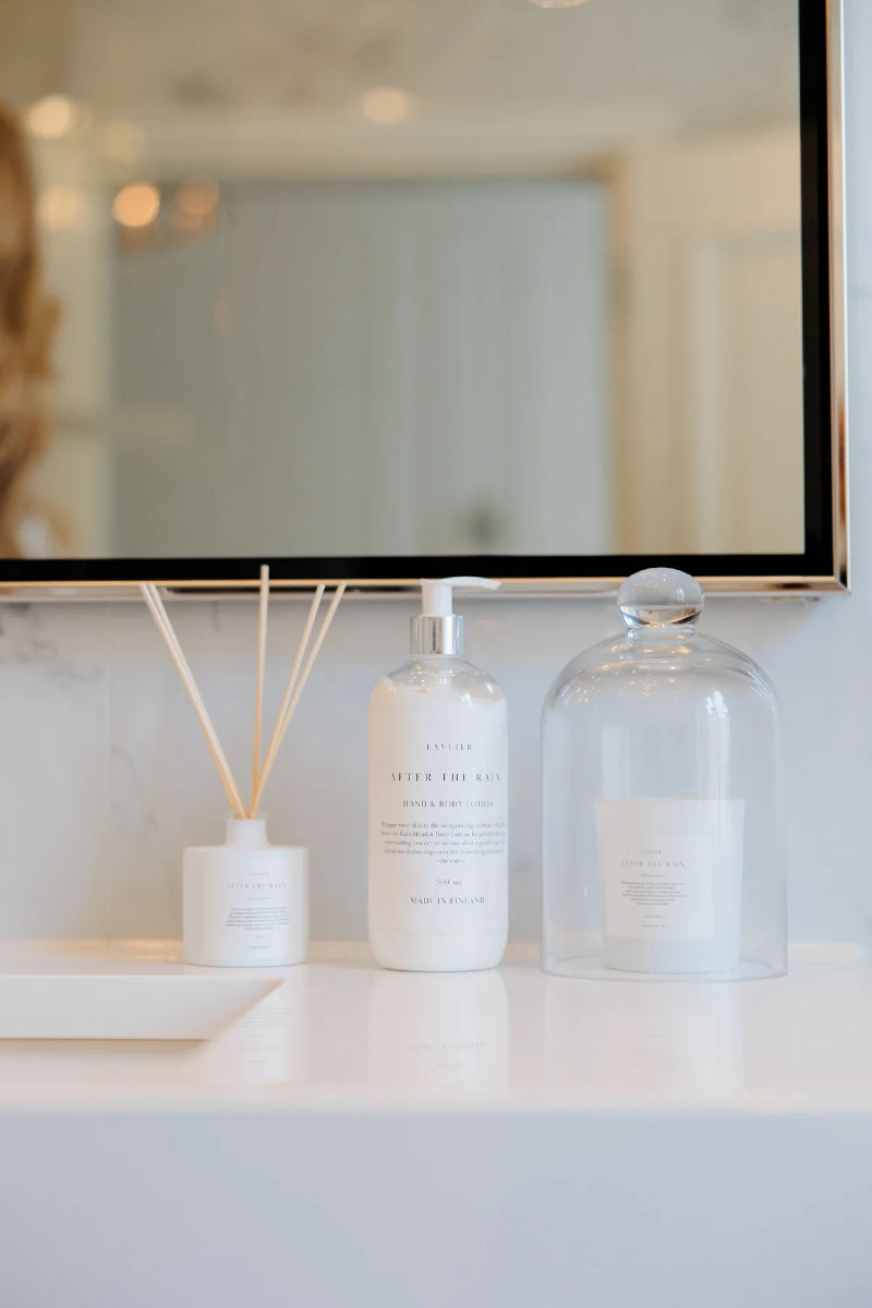 Tunne luonnon rauhoittava syleily Lavliér After the Rain -tuoksukynttilän avulla. Raikkaan sadeveden, eukalyptyksen ja kosteiden lehtien hienovaraiset vivahteet tuovat ulkoilman kotiisi luoden rauhallisen ja virkistävän tunnelman mihin tahansa huoneeseen. Hengitä syvään ja anna rauhoittavan tuoksun rentouttaa. Laadukkaasta vahasta valmistettu After the Rain -tuoksukynttilä palaa puhtaasti ja tasaisesti.