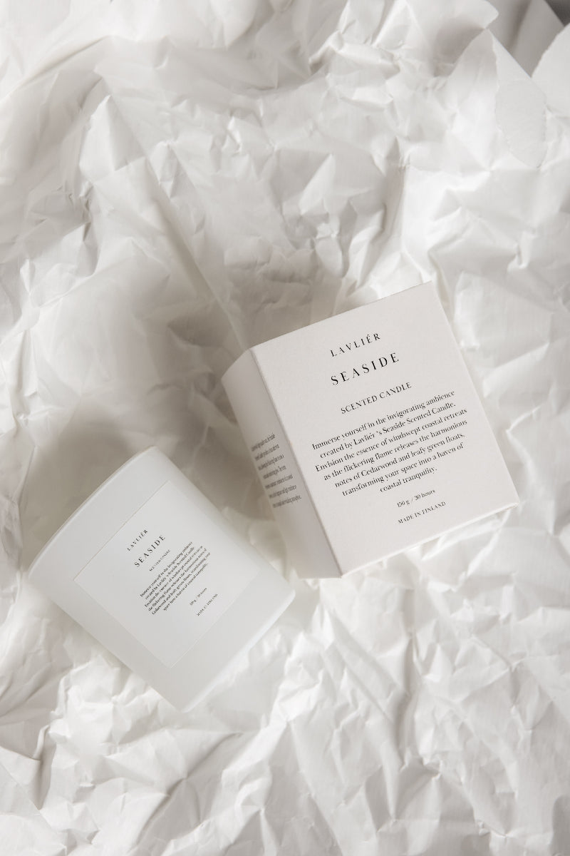 Huolellisesti Suomessa kehitetty tuoksu, laadukkaasta vahasta valmistettu vegaaninen Lavliér Seaside tuoksukynttilä palaa puhtaasti ja tasaisesti.