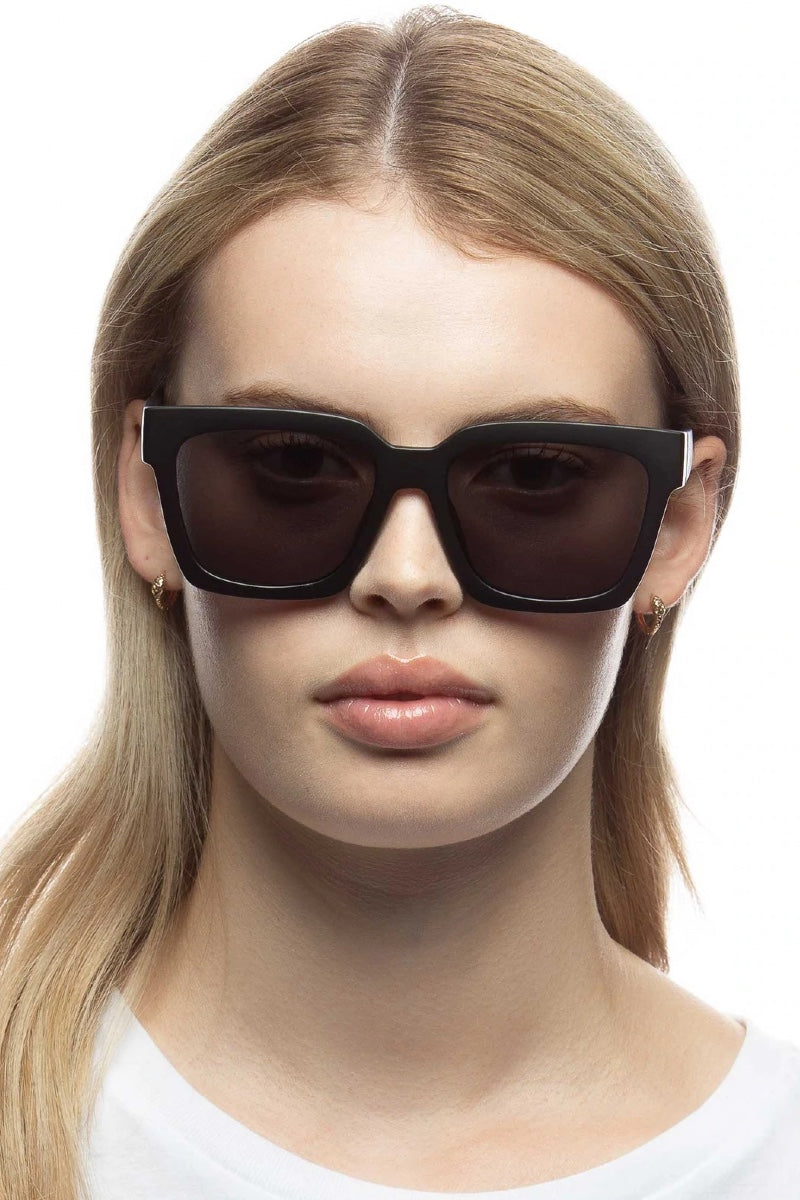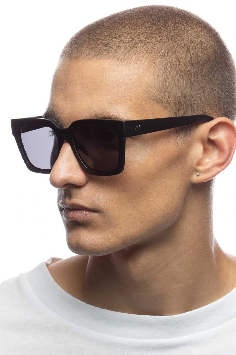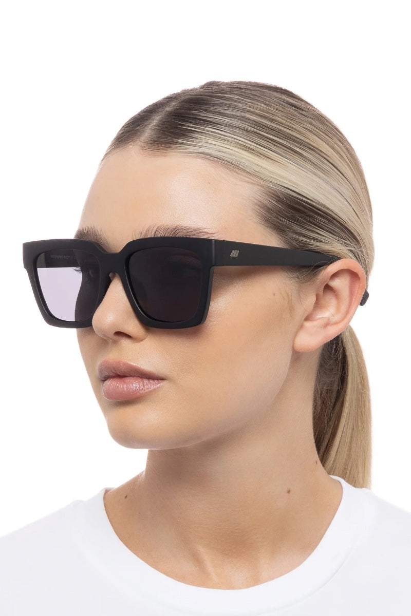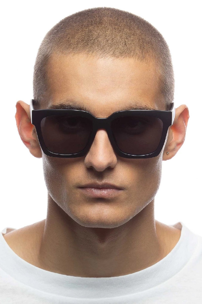 Weekend Riot by the Australian sunglass manufacturer Le Specs is an 'oversized' model that is especially suitable for wider faces . The light but durable TRITAN plastic frames have a very stylish matte black finish.