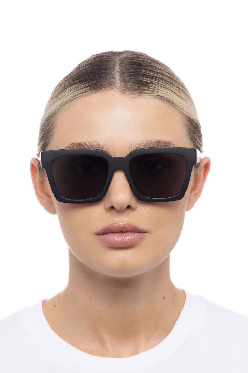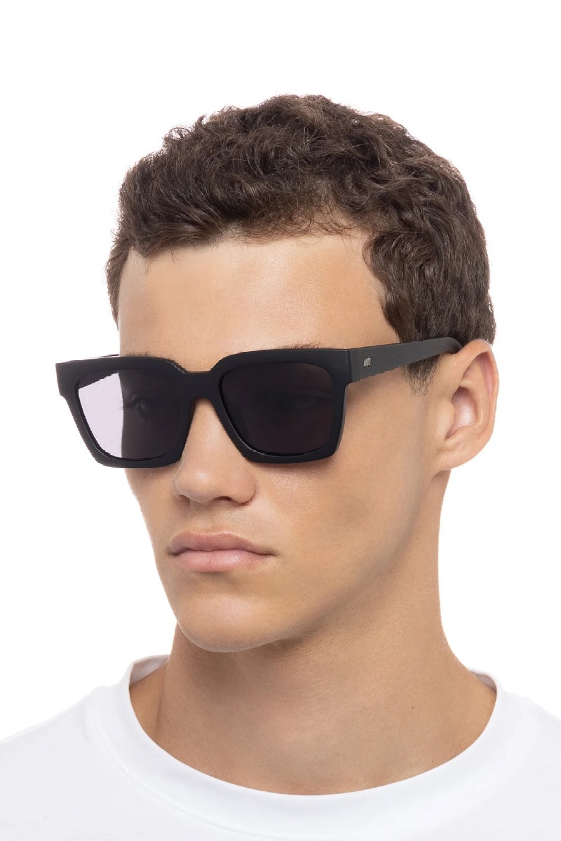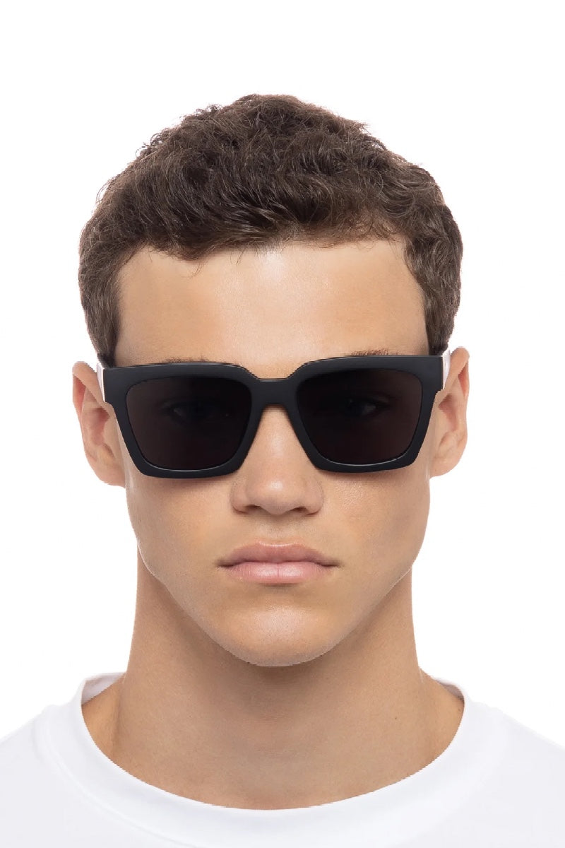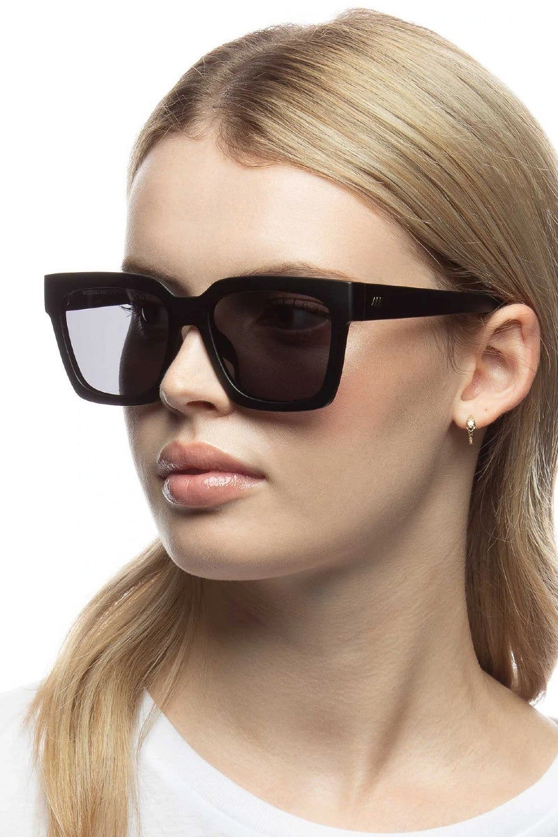 Weekend Riot by the Australian sunglass manufacturer Le Specs is an 'oversized' model that is especially suitable for wider faces . The light but durable TRITAN plastic frames have a very stylish matte black finish.