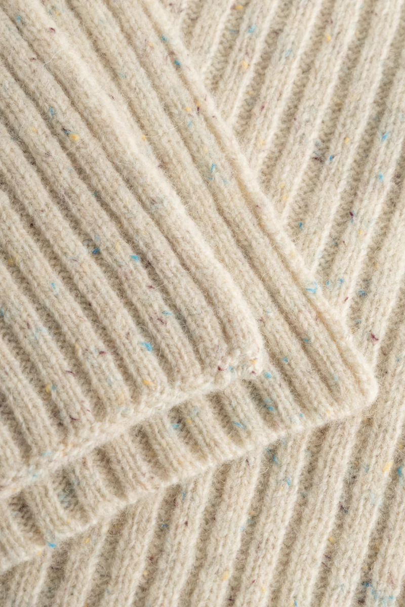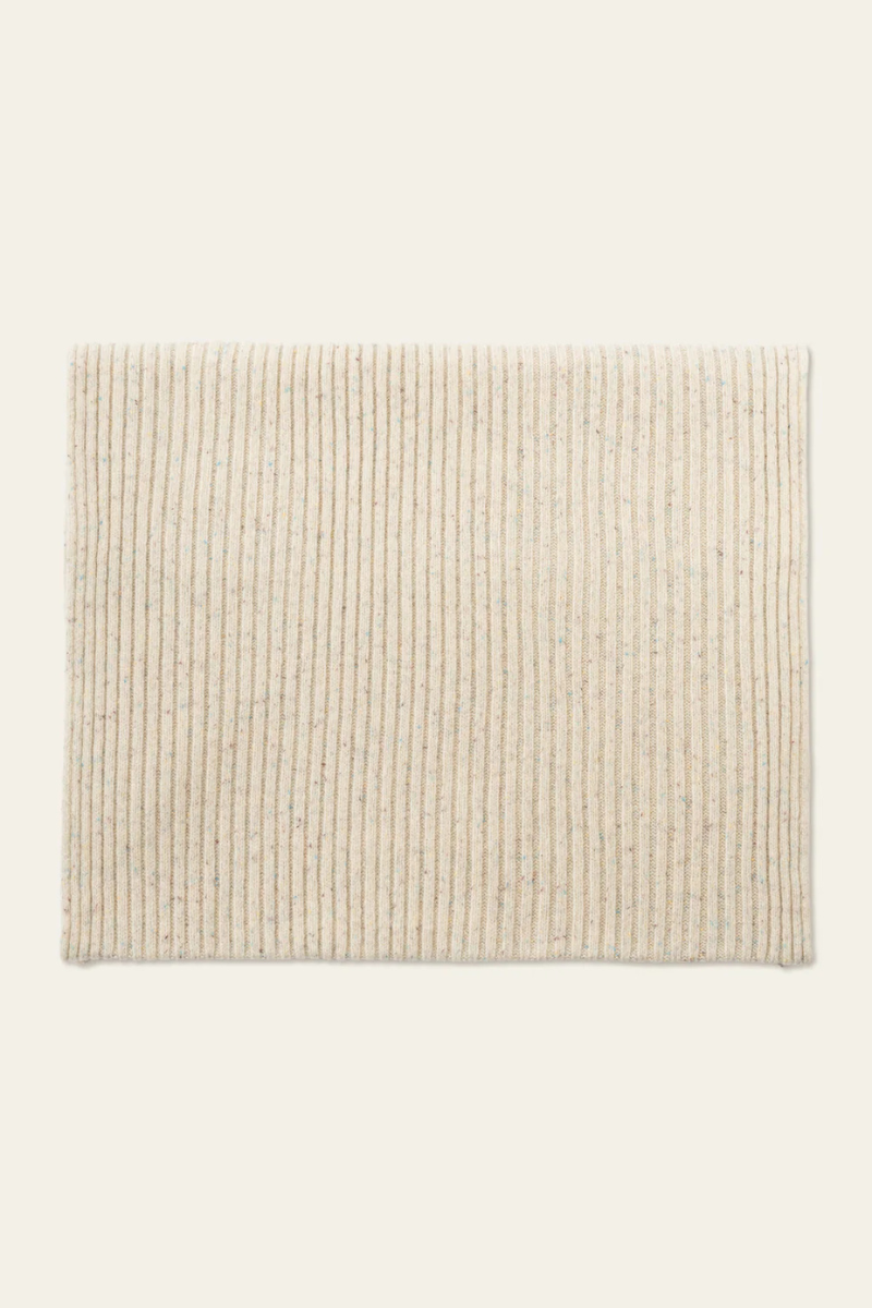 Ylellisestä ribatusta villasta valmistettu unisex-huivi, jossa pieniä 'fleck' -värinyppyjä, elävöittämässä huivin lookkia.