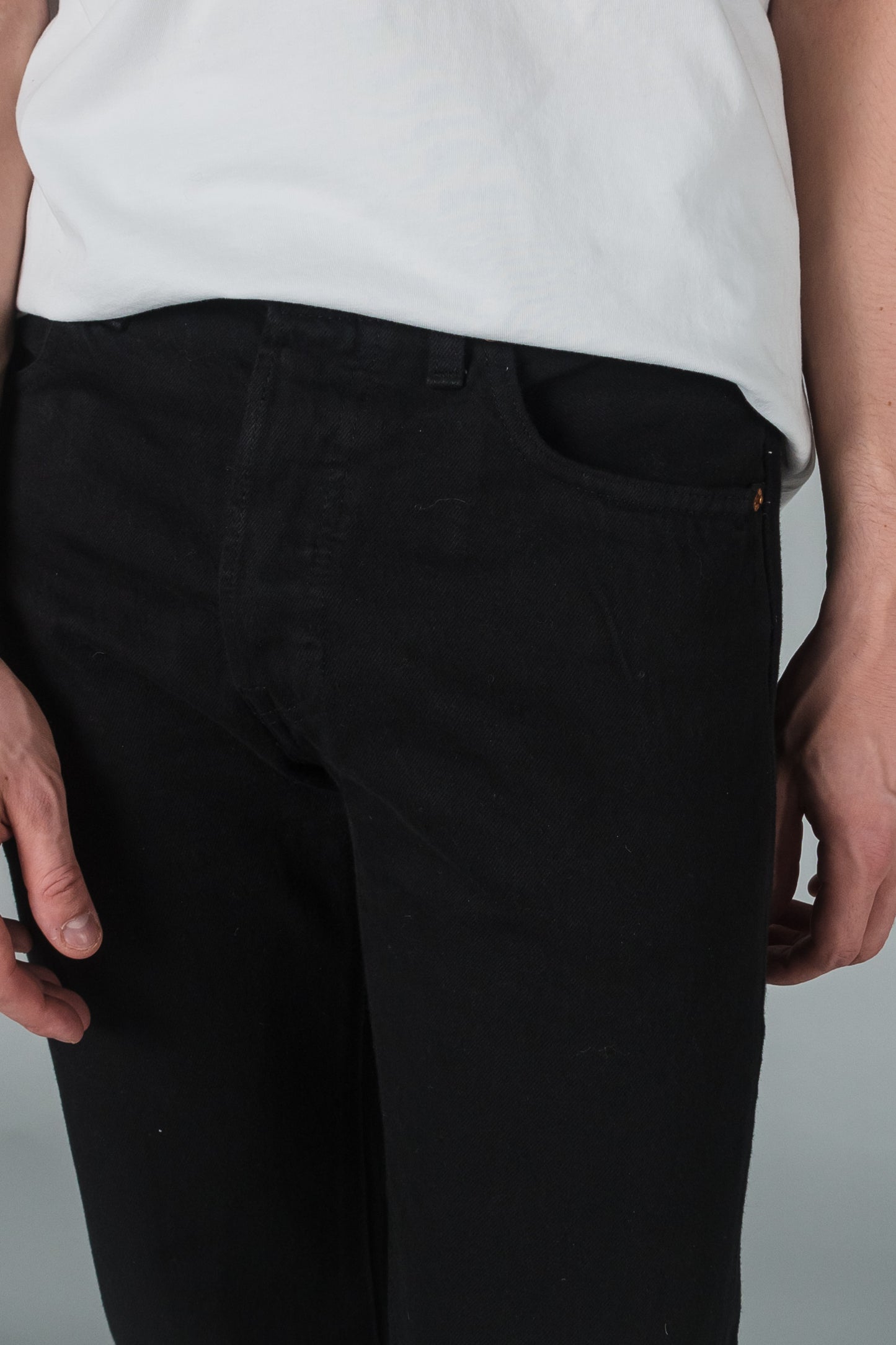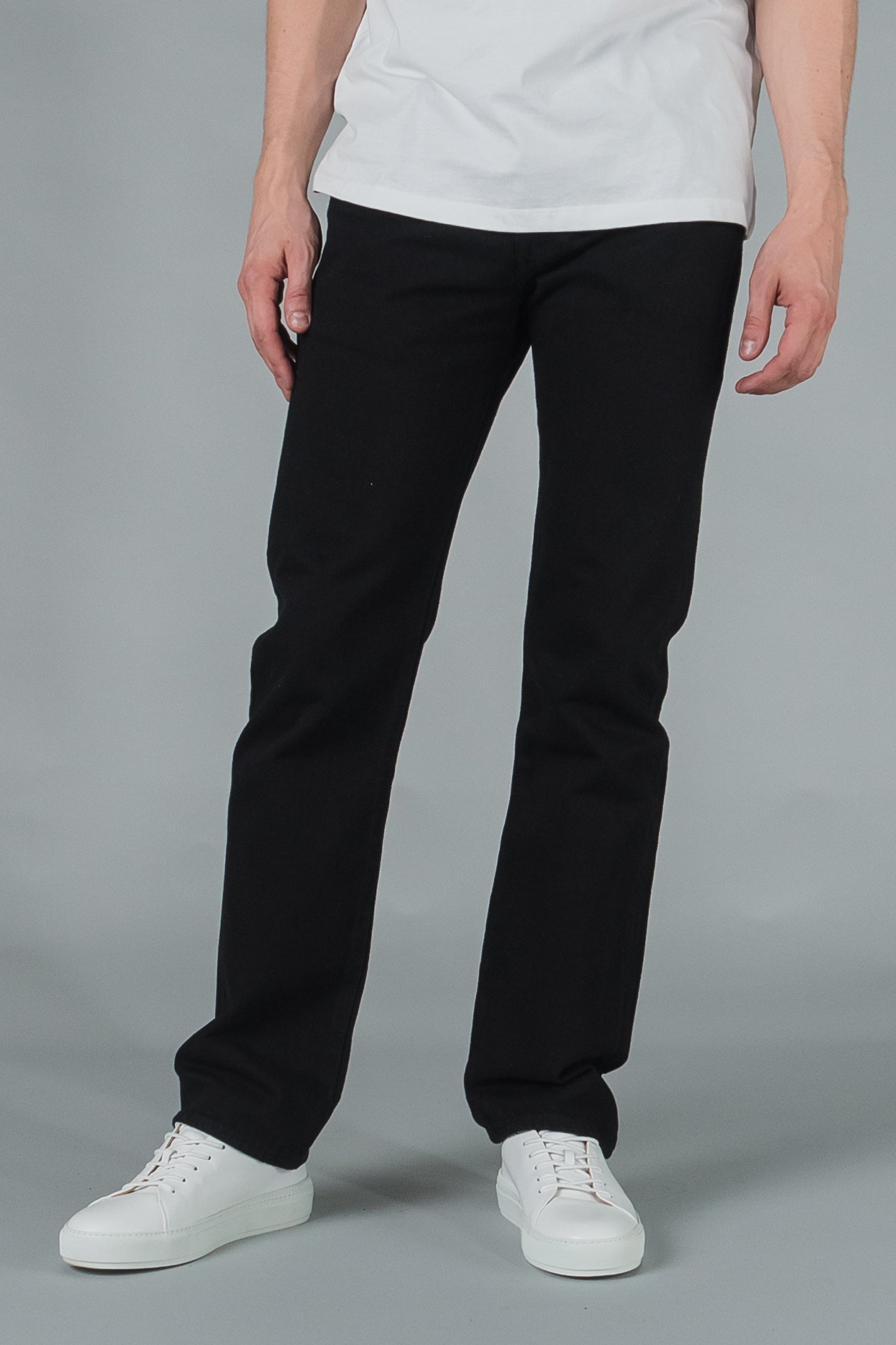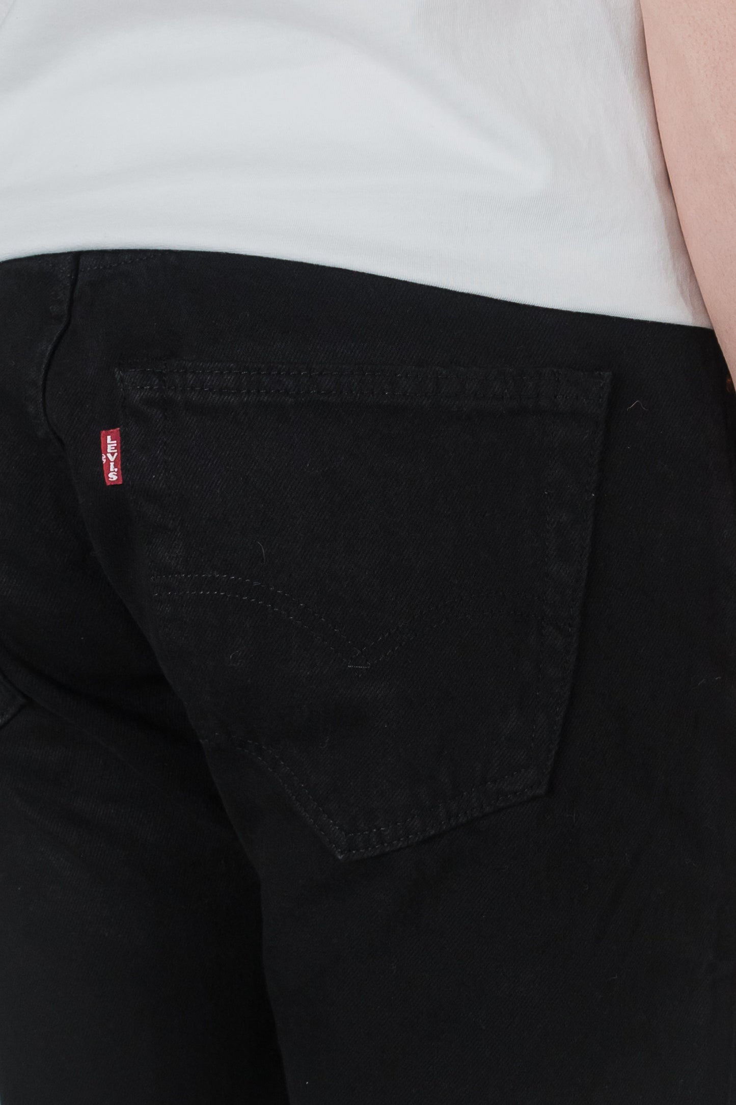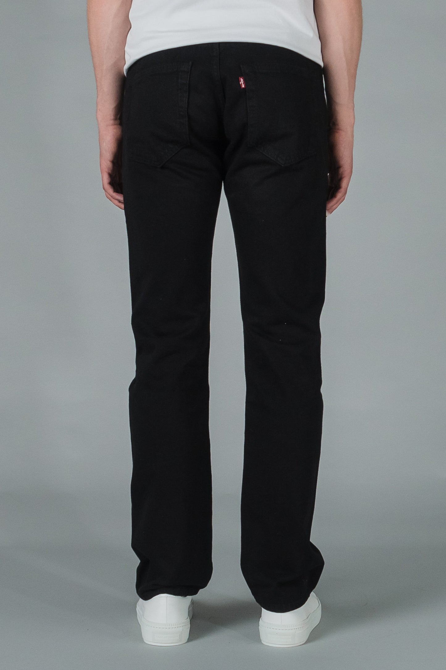 Levi's classic 501 original fit men's jeans in solid black. A straight, spacious fit and a relaxed fit. Comfortable 100% cotton.