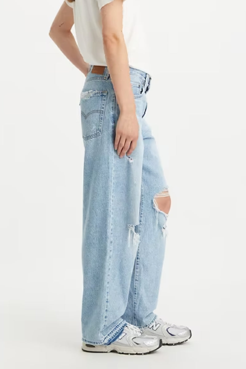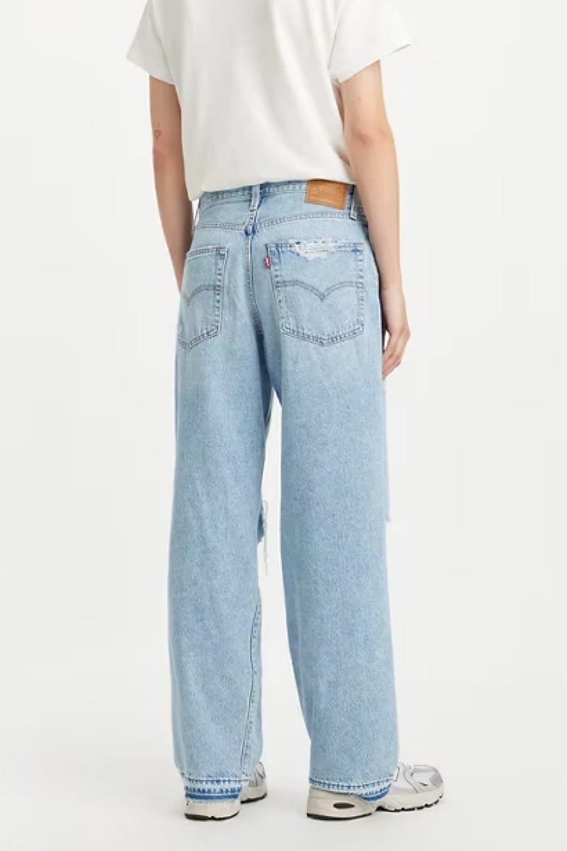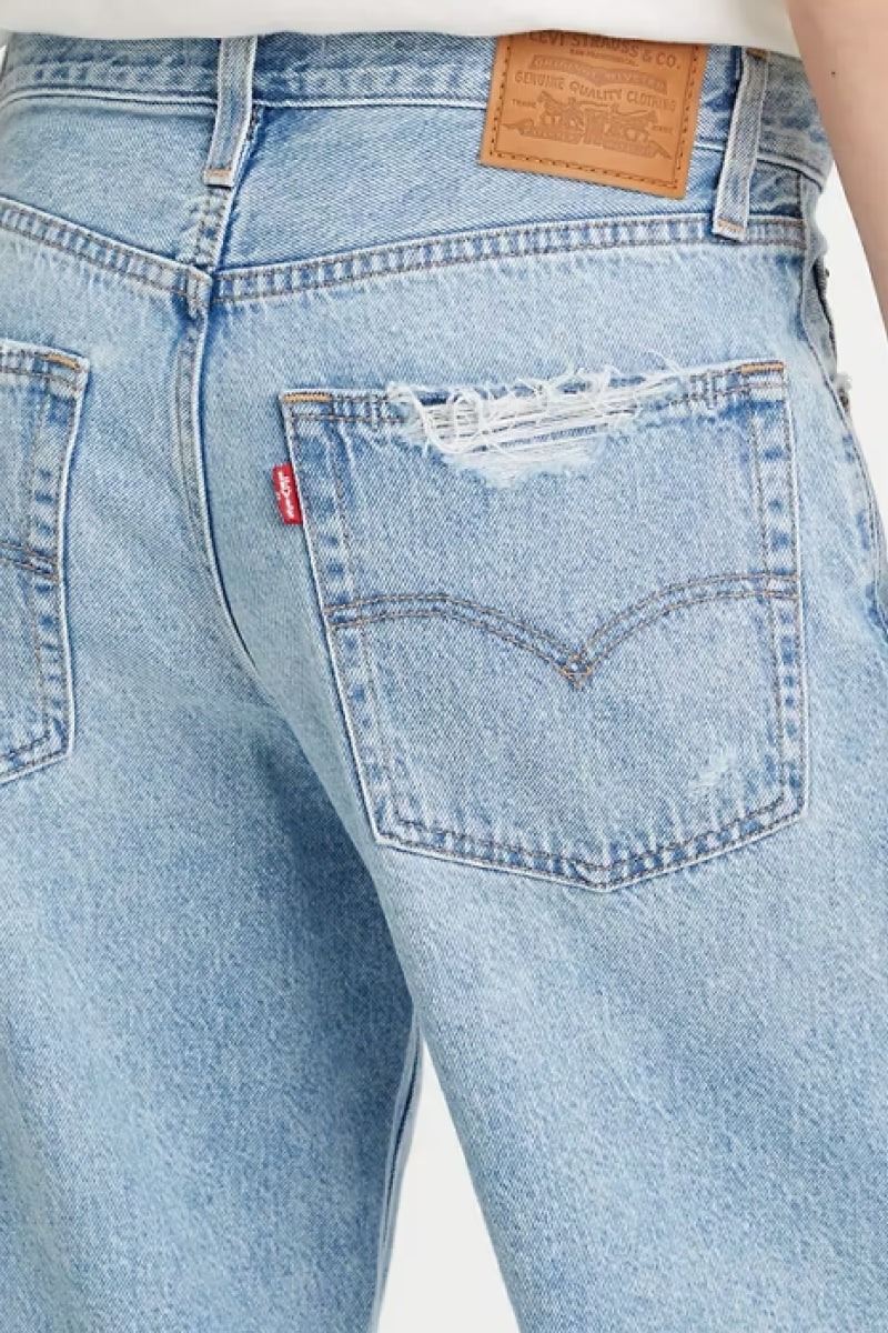 Casual jeans from Levis with ripped details. The cropped jeans have a mid-rise waist and straight, loose legs. The material is TENCEL™ Lyocell, which is a soft fiber and comes from ecologically thinned wood. Light wash and blue with a worn look.