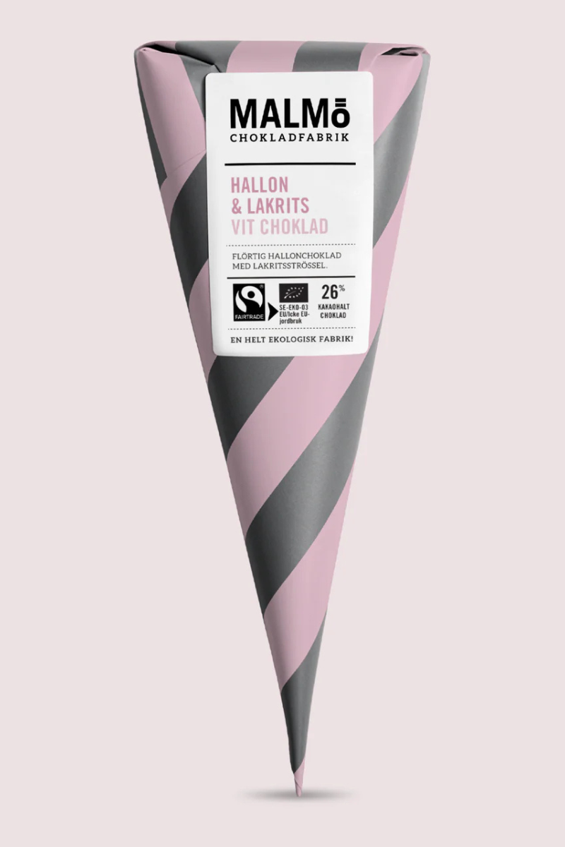 Malmö Chokladfabrik Hallon & Lakrits valkosuklaatuutti