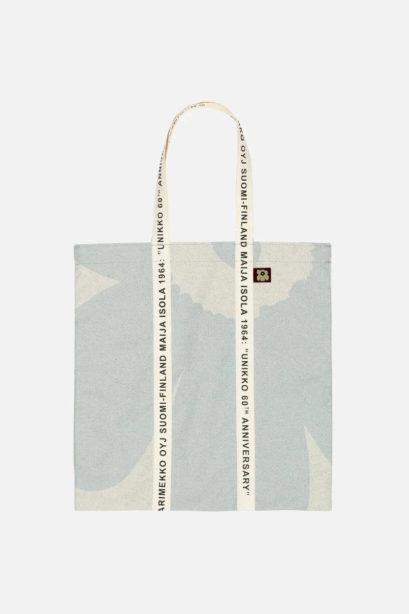 Carrier Midi -kassi on valmistettu valkaisemattomasta puuvillapellavasta ja siinä on suuri Unikko-kuosin kukka, joka on painettu Helsingissä. Unikon 60-vuotisjuhlavuosi-tekstillä painettu puuvillanauha kulkee laukun päällä muodostaen samalla laukun kantokahvat.