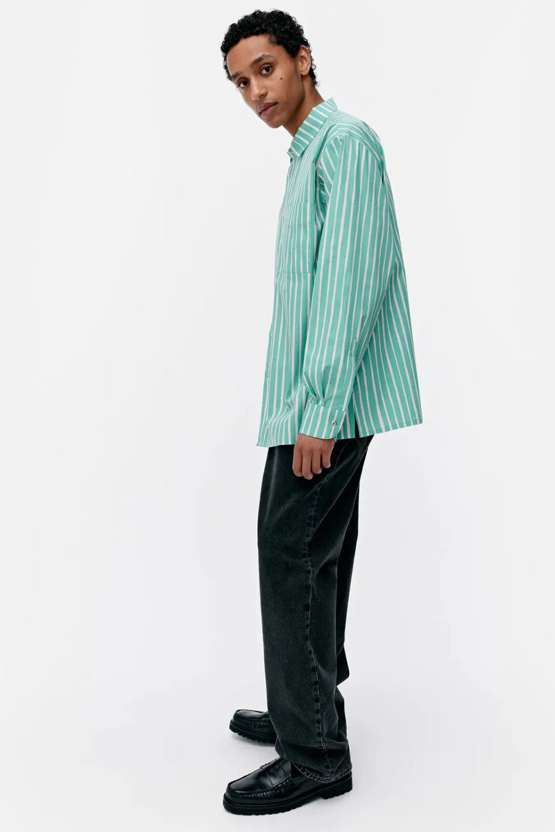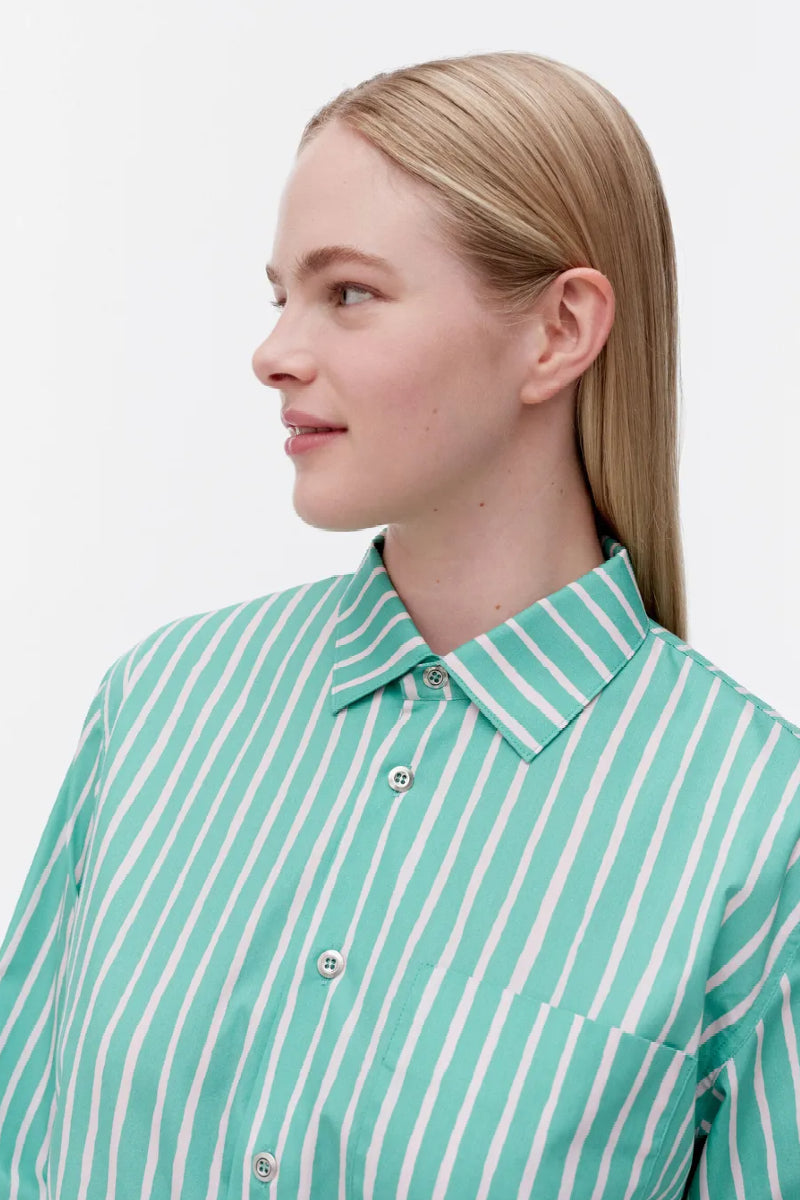 Jokapoika-paita on valmistettu luomupuuvillasta ja siinä on rento istuvuus ja suora leikkaus. Piccolo-kuosinen paita on painettu Helsingissä. Etulistan kääntöpuolella sekä mansetin sisäpuolella kuosi on erivärinen kuin paidan pääväri. Paidassa on kaulukset, metallinappisuljenta ja rintatasku. Hihansuissa on mansetit, joissa on metallinapit.