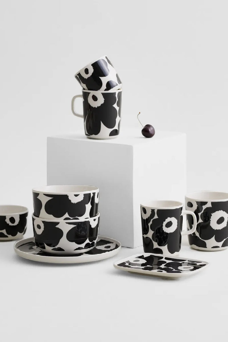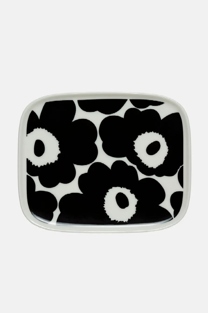 Marimekko Oiva / Unikko Lautanen 12x15cm - musta/valkoinen