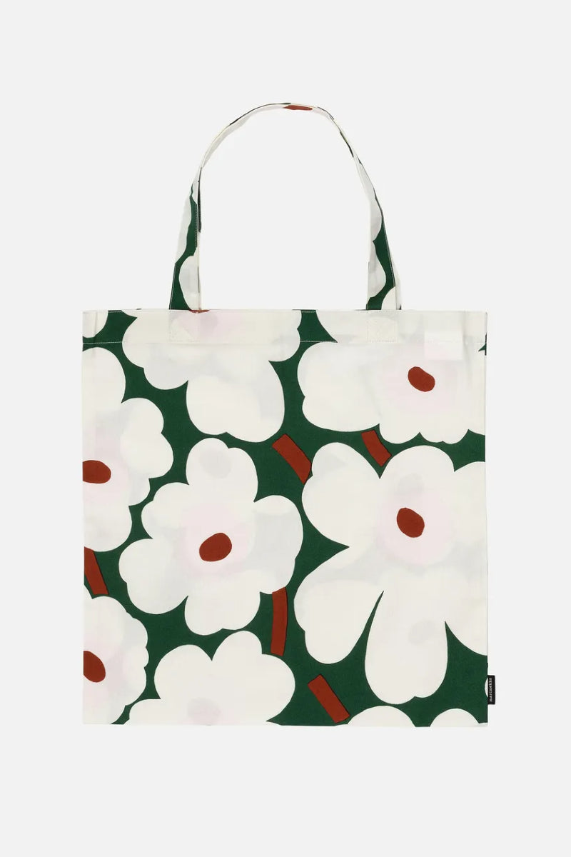 Marimekko Unikko kangaskassi 44 x 43cm - valkoinen / vihreä / punainen