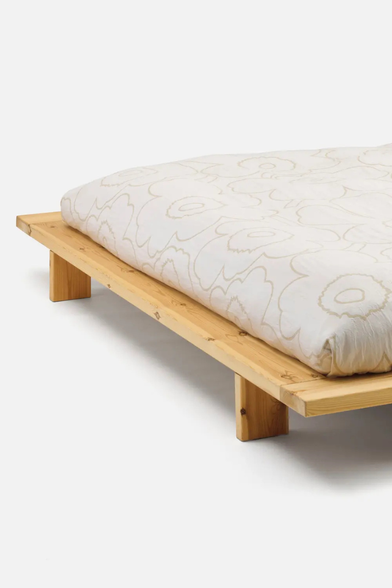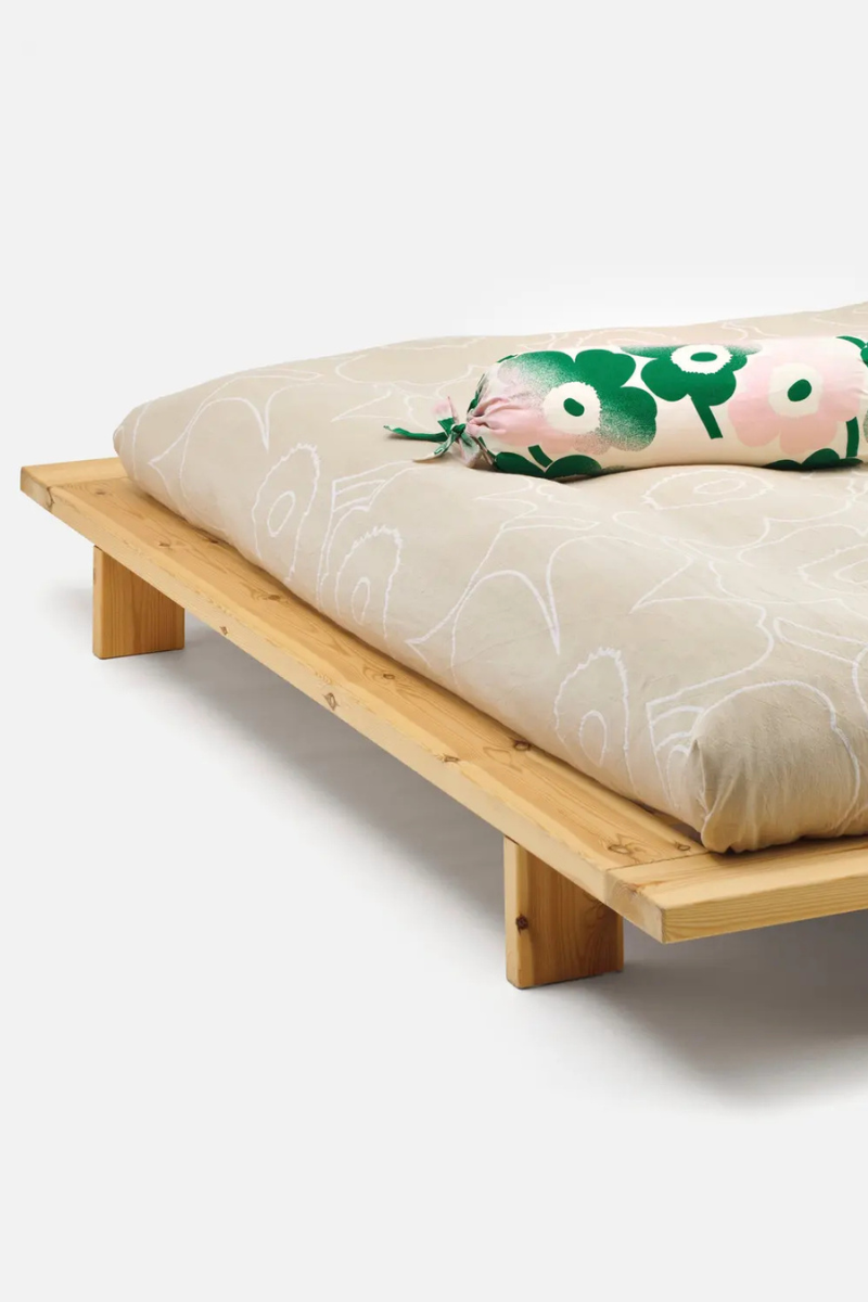 The quilted Unikko-patterned double bedspread is made of unbleached cotton. The padding of the blanket is made of 100% recycled polyester.