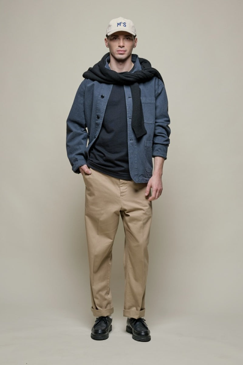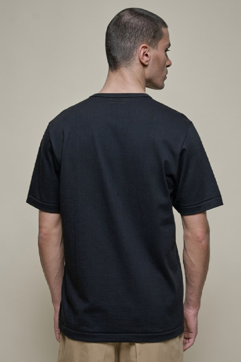 Jämäkkä jersey-kangas on valmistettu Saksassa ainutlaatuisella 1960-luvun puolivälissä valmistetulla jersey-koneella. T-paita saa inspiraationsa poikkeuksellisesta Mid-Century-tyylistä. T-paidassa yhdistyvät perinteinen muotoilu ja modernit vivahteet, jotka sopivat täydellisesti sekä vintagetyyliseen että moderniin pukeutumiseen.