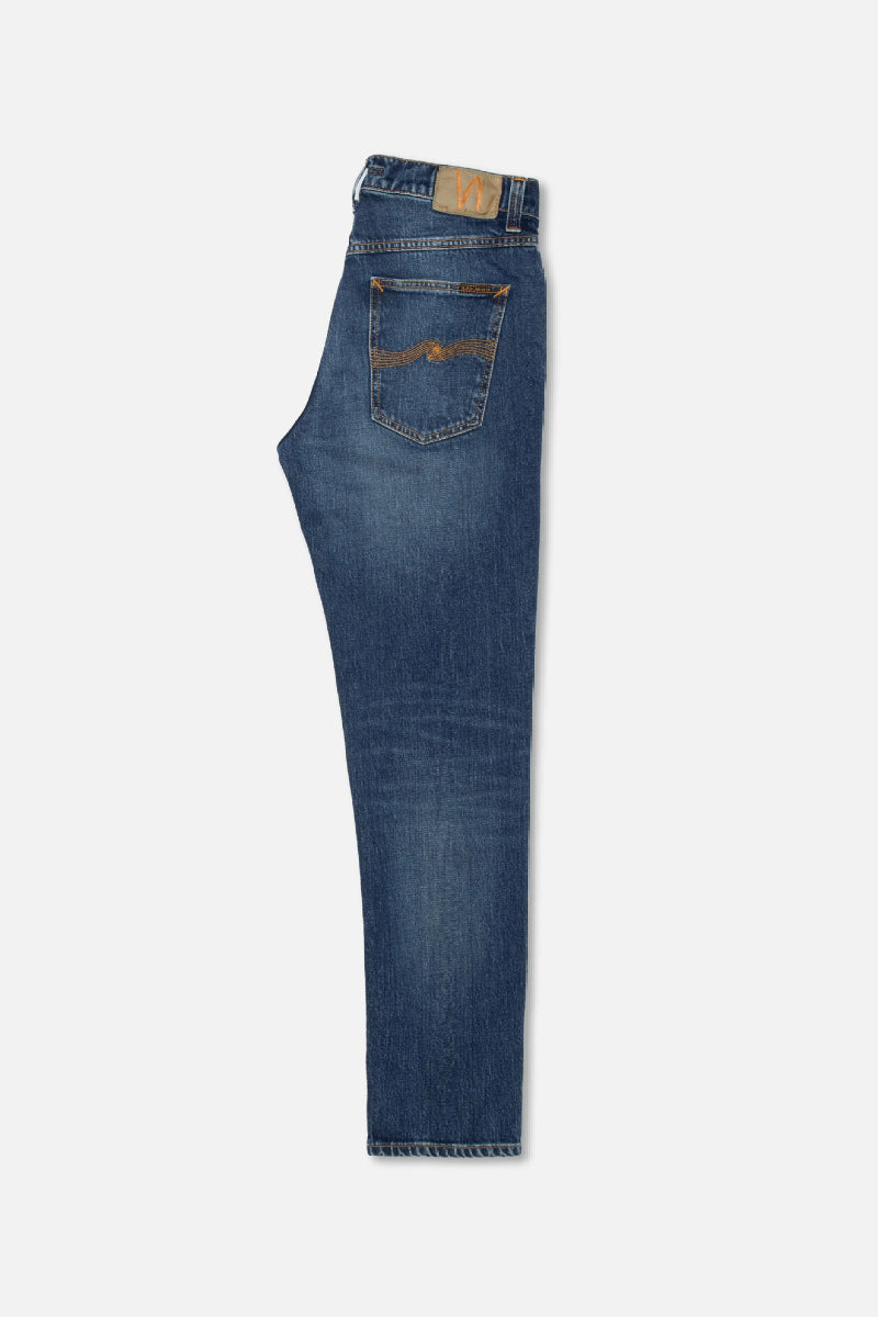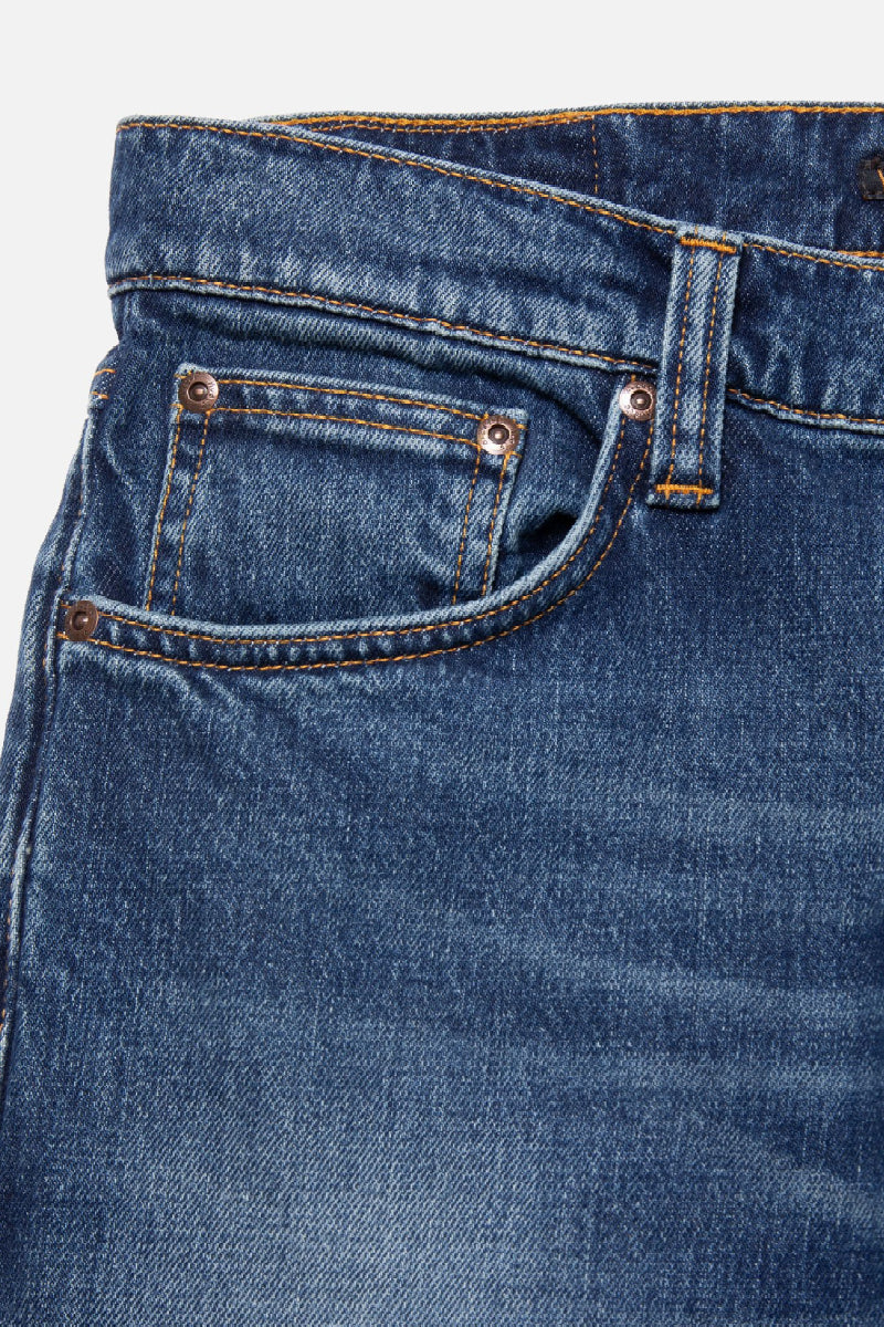 Uusi farkkumalli ruotsalaiselta Nudie Jeansilta! Solid Ollie on slim fit -farkkumalli keskikorkealla vyötäröllä, kapeilla lahkeilla ja autenttisella kulutuksella. Näissä tummansinisissä farkuissa yhdistyvät moderni istuvuus ja laadukkaat yksityiskohdat. Ne on valmistettu tekstuuriltaan erottuvasta joustavasta denimistä. Hienovaraiset ja hieman lämpimät kulutukset antavat farkuille aidosti käytetyn ilmeen.