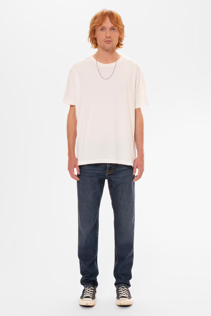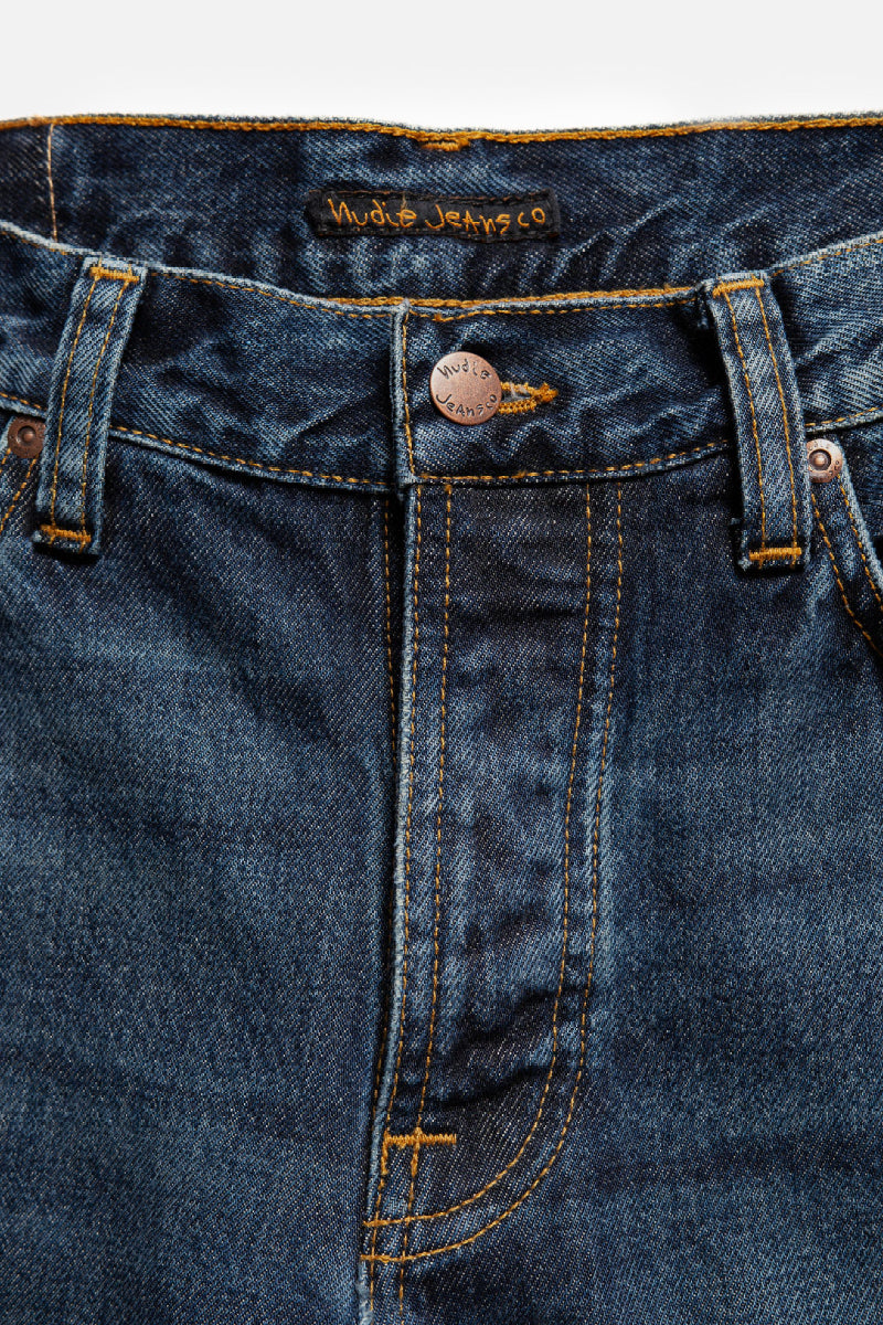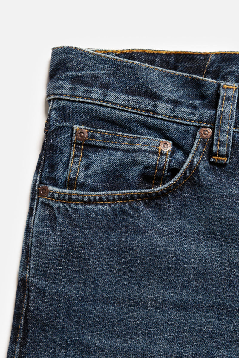 Mukavan paksusta 14.9 unssisesta denimkankaasta valmistetut farkut. Mallissa on kapeneva lahkeensuu ja keskikorkea vyötärö. Tummansininen pesu, jossa on hienovaraiset kulutukset. Pesu tarjoaa vaikuttavan spektrin upeita indigon sävyjä hienoilla marmorimaisilla kulutuskohdilla.