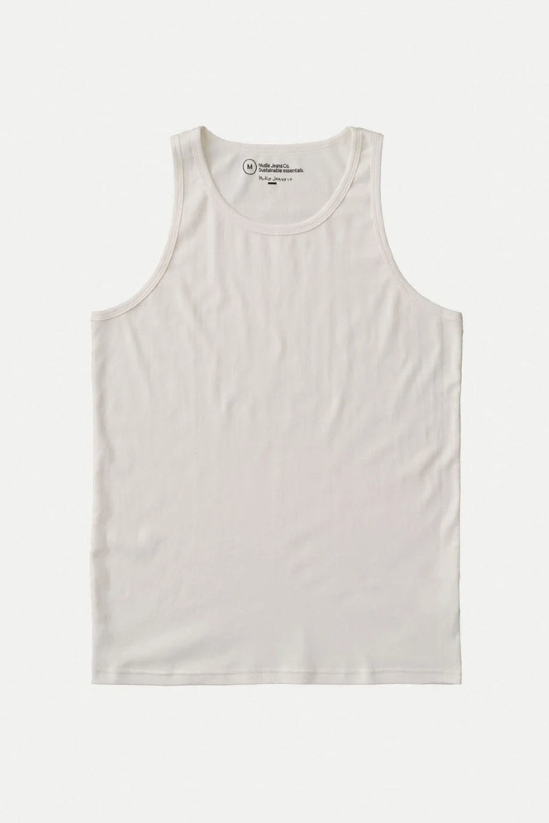Sataprosenttisesta reilun kaupan luomupuuvillasta valmistettu tank top Nudielta. Slim fit-malli jonka kangas on pehmeää ja kevyttä 1x1 ribbineulosta sekä siinä on niskassa painatetut koko- ja tuotetiedot perinteisen lapun tilalta. Tuote on osa uutta Nudie Jeans Essentials -mallistoa joka on kokoelma monikäyttöisiksi ja kestäviksi suunniteltuja basic-tuotteita.