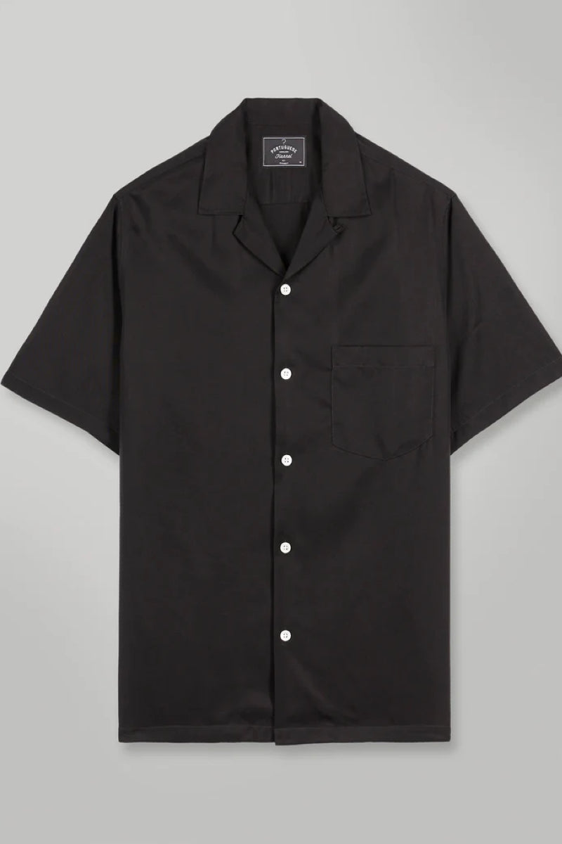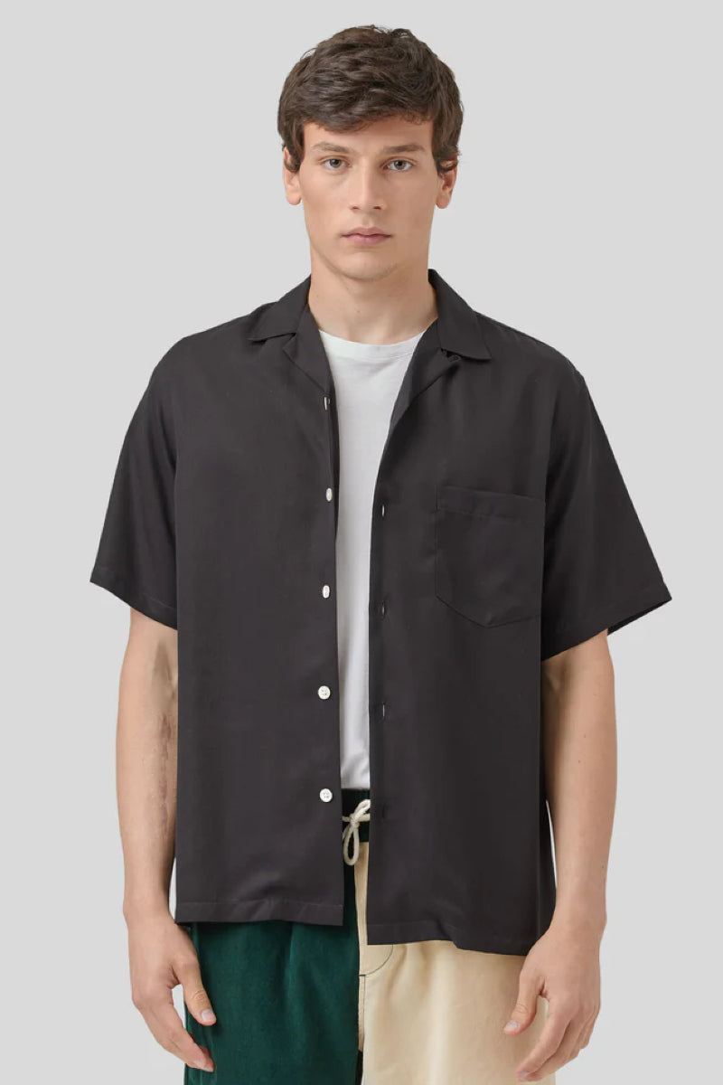 A very popular Portuguese Flannel men's short-sleeve shirt with camp collars. The shirt is made of comfortable tencel and finished with high-quality mother of pearl buttons.