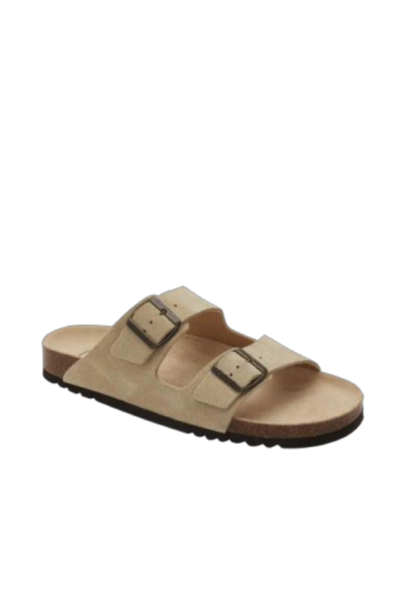 Suede thong sandals designed in Italy from Scholl. The suede-covered Softstep® sole , which supports the foot's arch and natural position, is made of rubber and cork. Adjustable straps.