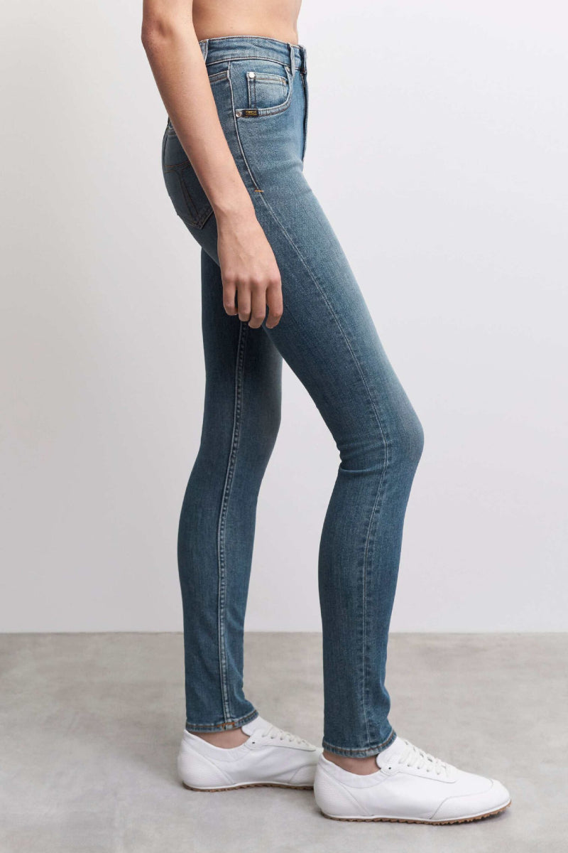 Popular women's jeans from the Swedish Tiger of Sweden. The Superslim fit model is skin-licking tight and has a flatteringly high waist. The 12.4 oz comfort stretch denim fabric makes the pants flexible and well fitting. Fresh medium blue wash with moderate wear.