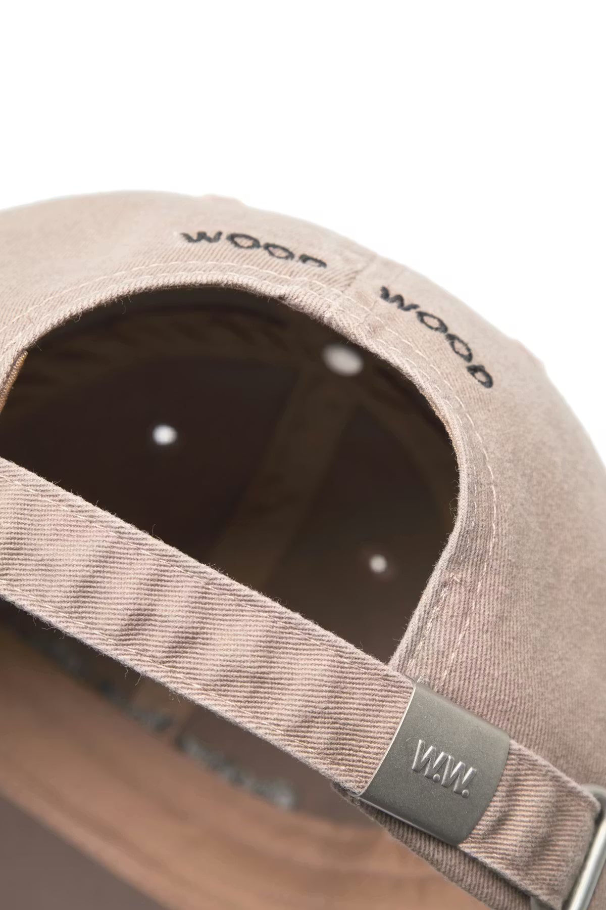 Tanskalaisen Wood Woodin puuvillasta valmistettu unisex-lippis, jonka edessä brodeerattu teksti tuo mielenkiintoa lookkiin.
