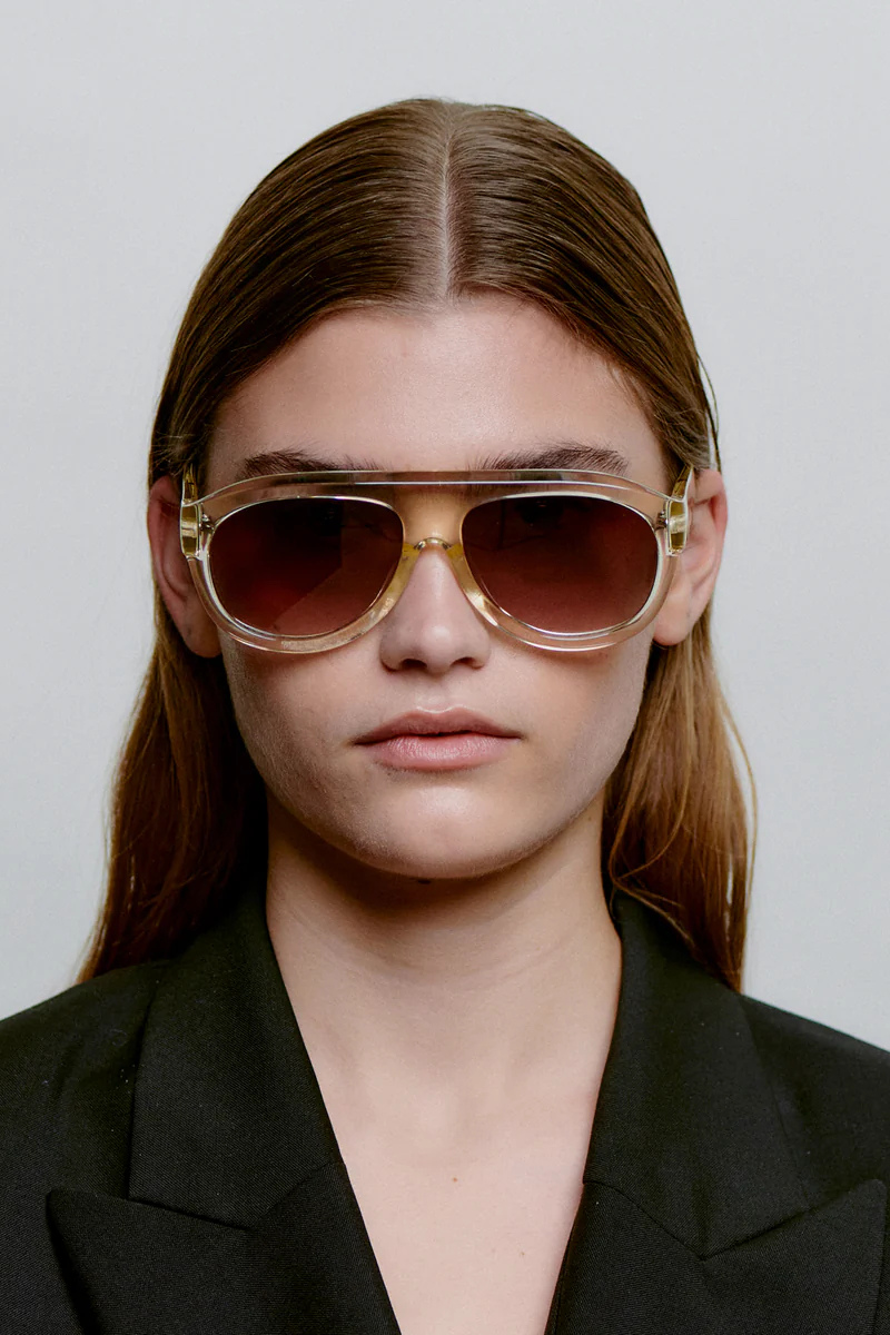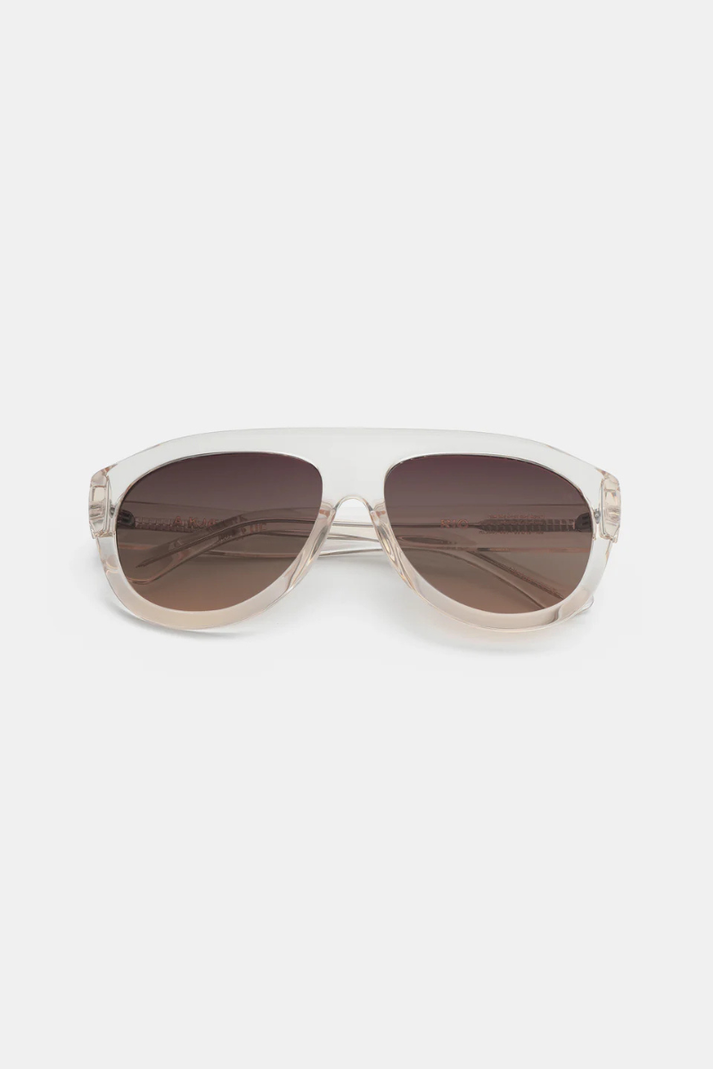 Rio on moderni tulkinta klassisesta aviator-mallista. Veistoksellinen kehys ja voimakas siluetti tekevät aurinkolasista näyttävän kokonaisuuden, jossa perinteinen muoto kohtaa nykyaikaisen designin. Syvä asetaattikehys tuo ilmeeseen skarppiutta.