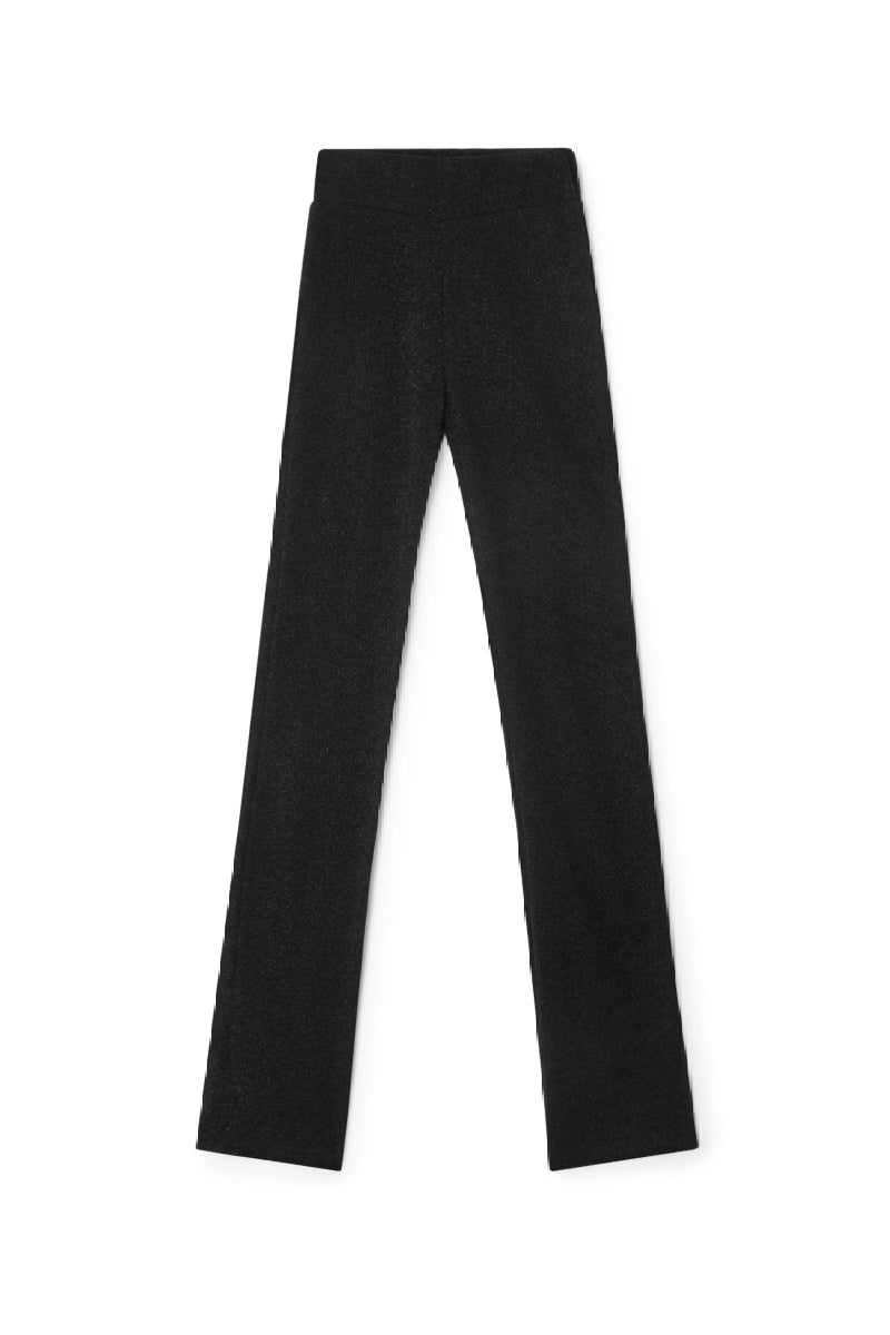 Ainoat bilehousut, jotka tarvitset tulevaan pitkään juhlakauteen! Housut on valmistettu hohtavasta lurex-kankaasta ja niissä on joustava vyötärönauha. Lahkeiden alaosassa on 15 cm halkio, joka luo täydellisen laskoksen korkokengille. Housut istuvat vyötäröltä keskikorkeasti / korkeasti.