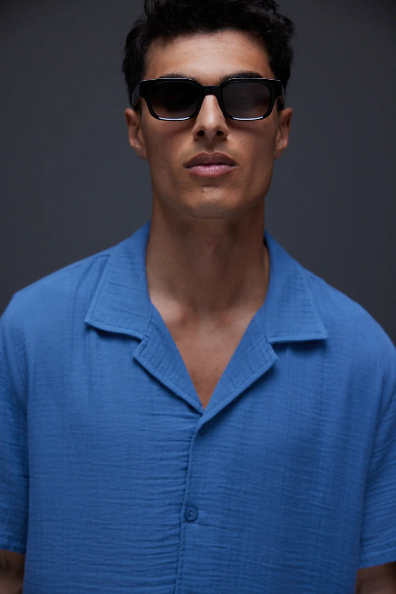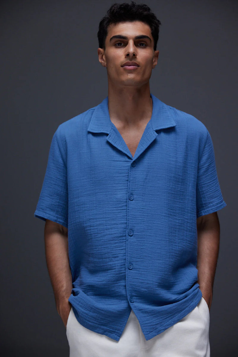 AVENY Collins shirt cotton crincle - indigo blue