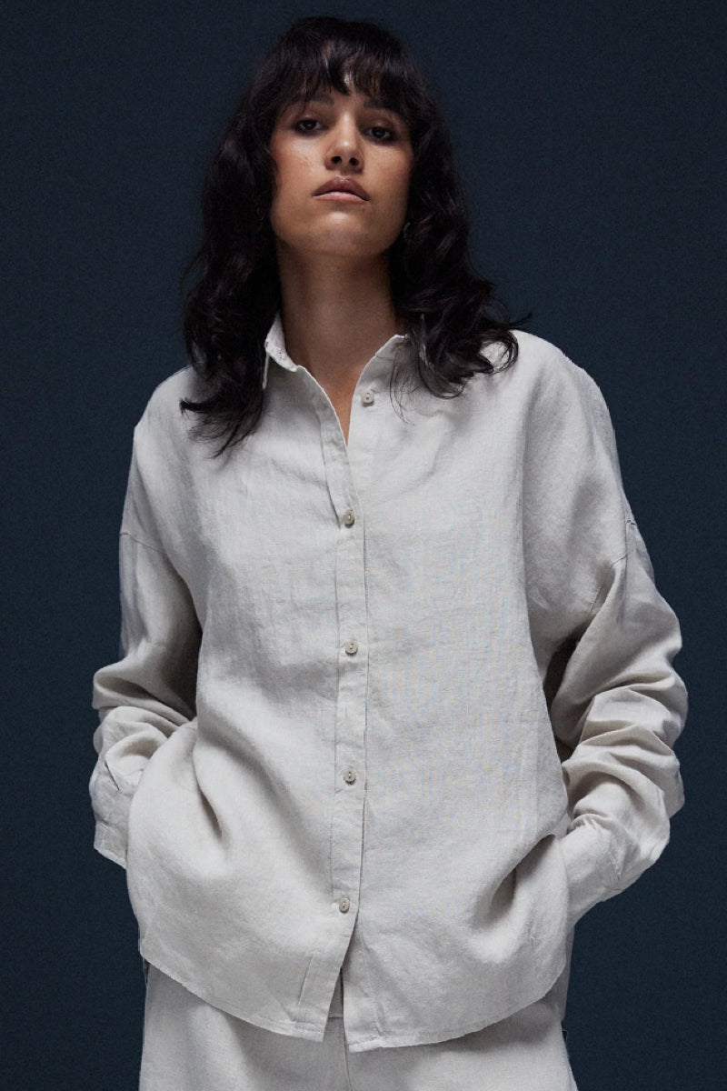 Upea pellavainen kauluspaita ruotsalaiselta AVENYltä. Paidan elegantti leikkaus sopii täydellisesti kesäiseen asukokonaisuuteen ja materiaali pitää ihon viileänä kuumallakin kelillä. Luo yhtenäinen kokonaisuus AVENY Beverly pellavahousujen kanssa.