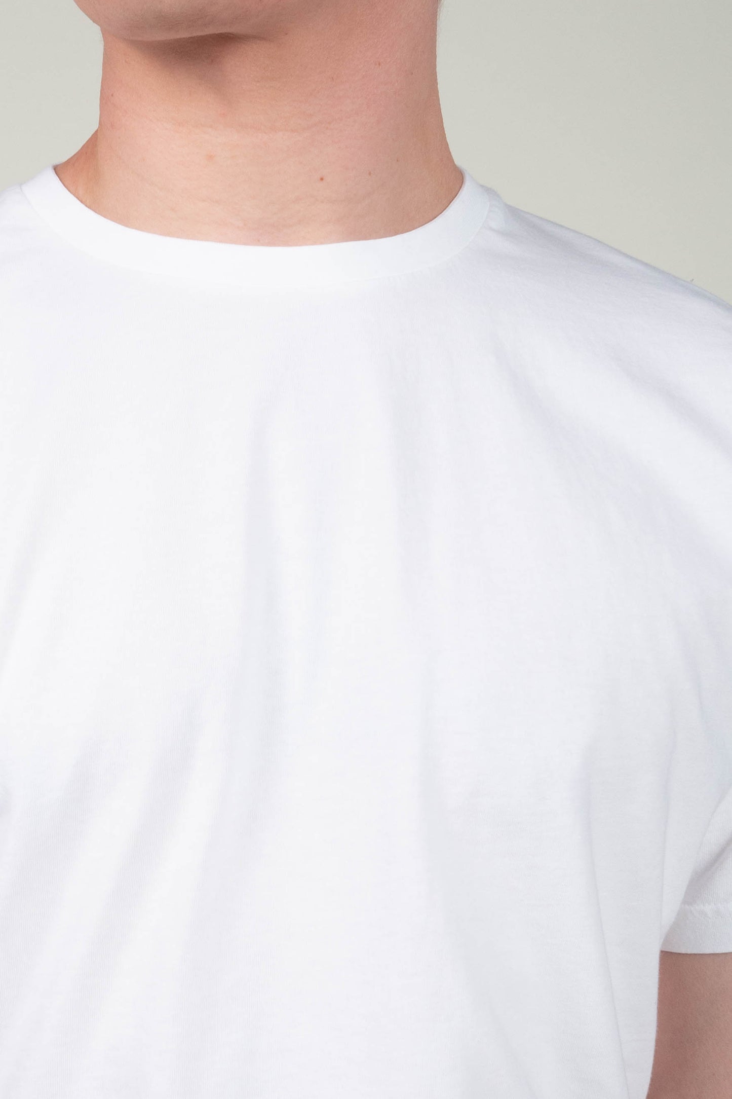 Raikkaan valkoinen Portugalissa valmistettu basic t-paita korkealaatuisesta puuvillasta.