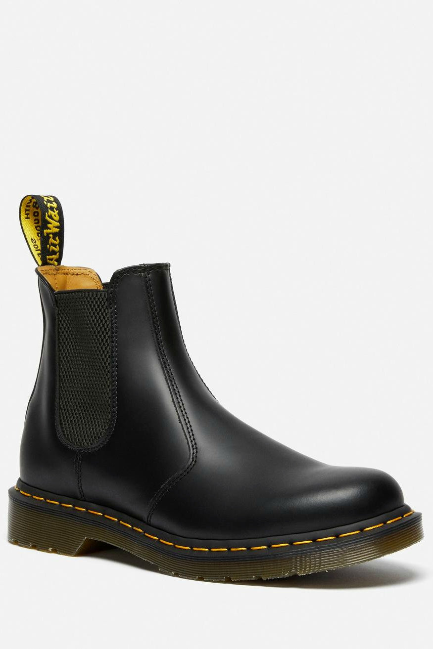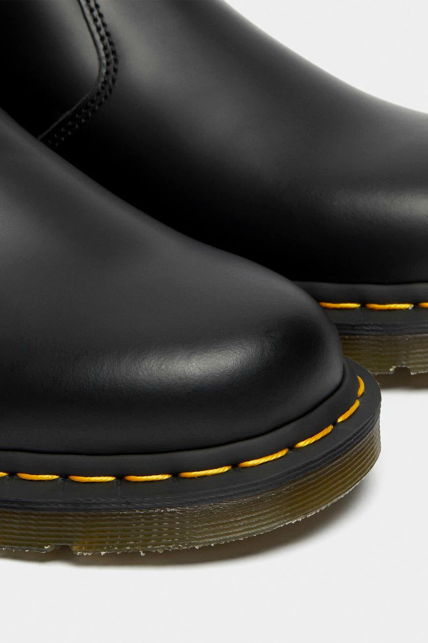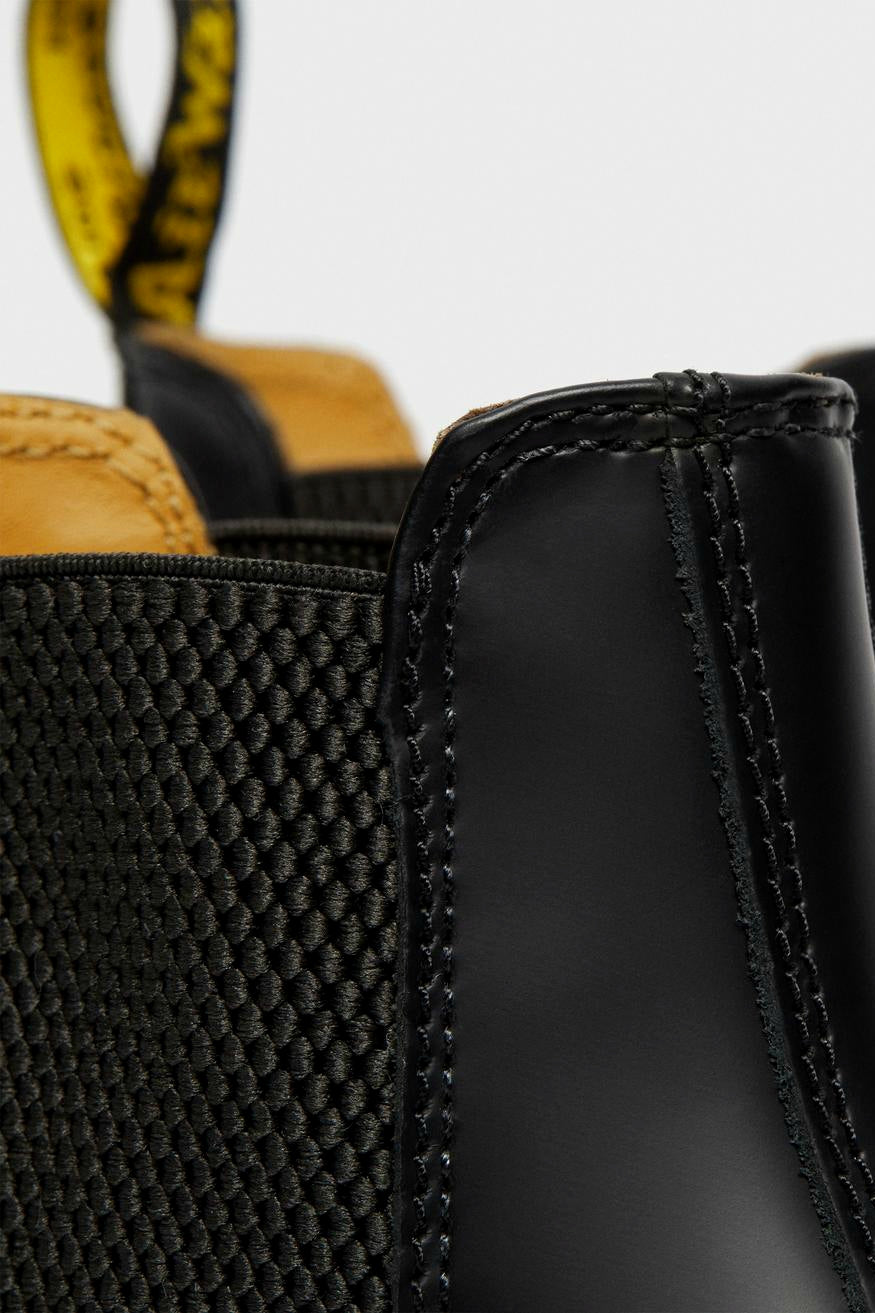 Doc Martens klassikko, chelsea boot laadukkaalla smooth leather -nahalla ja tunnistettavilla keltaisilla tikkauksilla. Mukavan jämäkkä ja hyvin jalkaan mukautuva miesten kenkä.