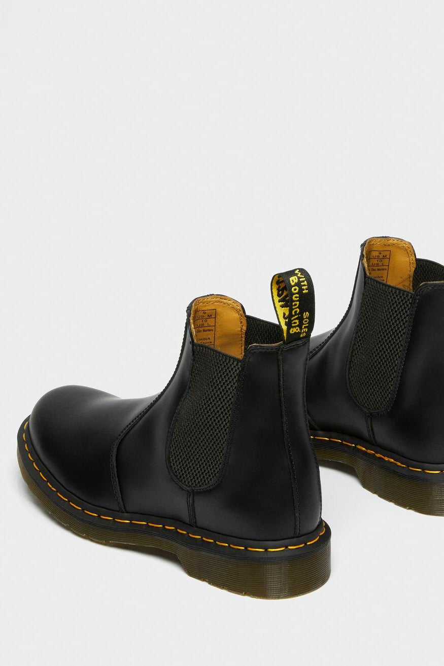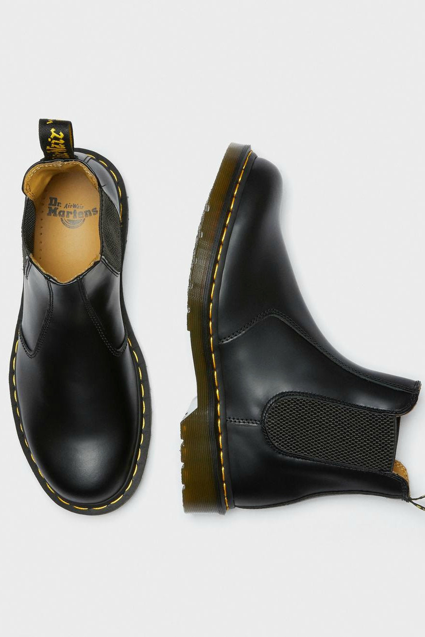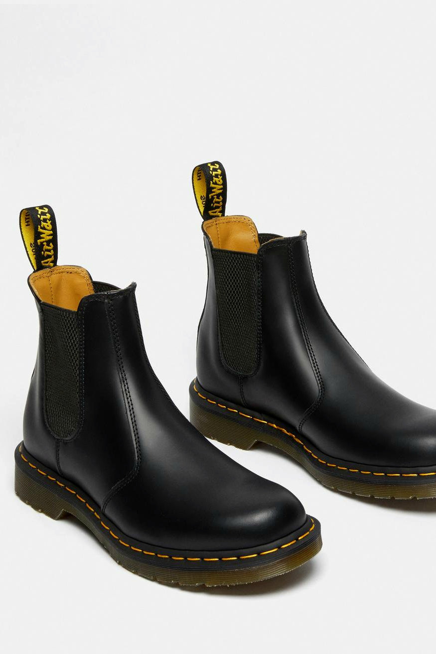 Doc Martens klassikko, chelsea boot laadukkaalla smooth leather -nahalla ja tunnistettavilla keltaisilla tikkauksilla. Mukavan jämäkkä ja hyvin jalkaan mukautuva miesten kenkä.