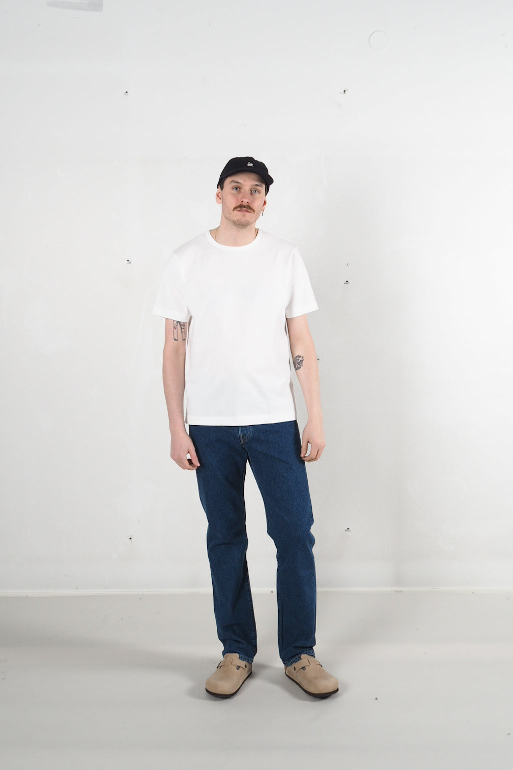 Edwinin suora farkkumalli klassisessa keskisinisessä pesussa. Farkuissa hieman väljä, suora puntti, korkea vyötärö sekä nappisepalus. Valmistettu 12,5-unssisesta Kaihara Pure Indigo opened -denimkankaasta.