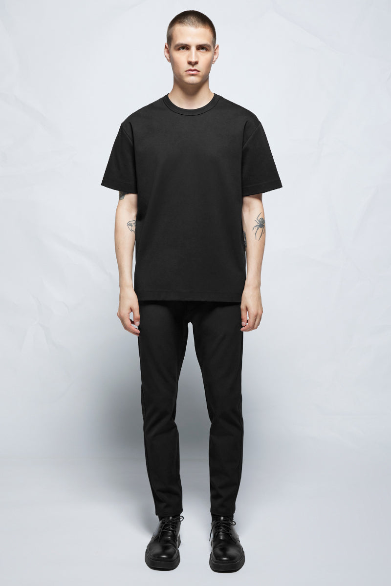 Rennon silhuetin t-paita Elvineltä. Valmistettu paksusta ja kaksinkertaisesta Double-Faced jersey-kankaasta, joka vie tavallisen t-paidan uudelle tasolle. Viimeistelty minimalistisella pääntiellä ja pienellä logokirjailulla.