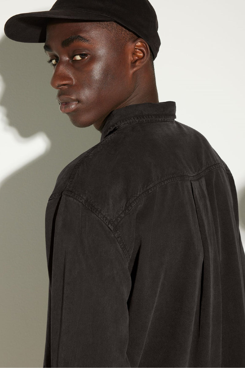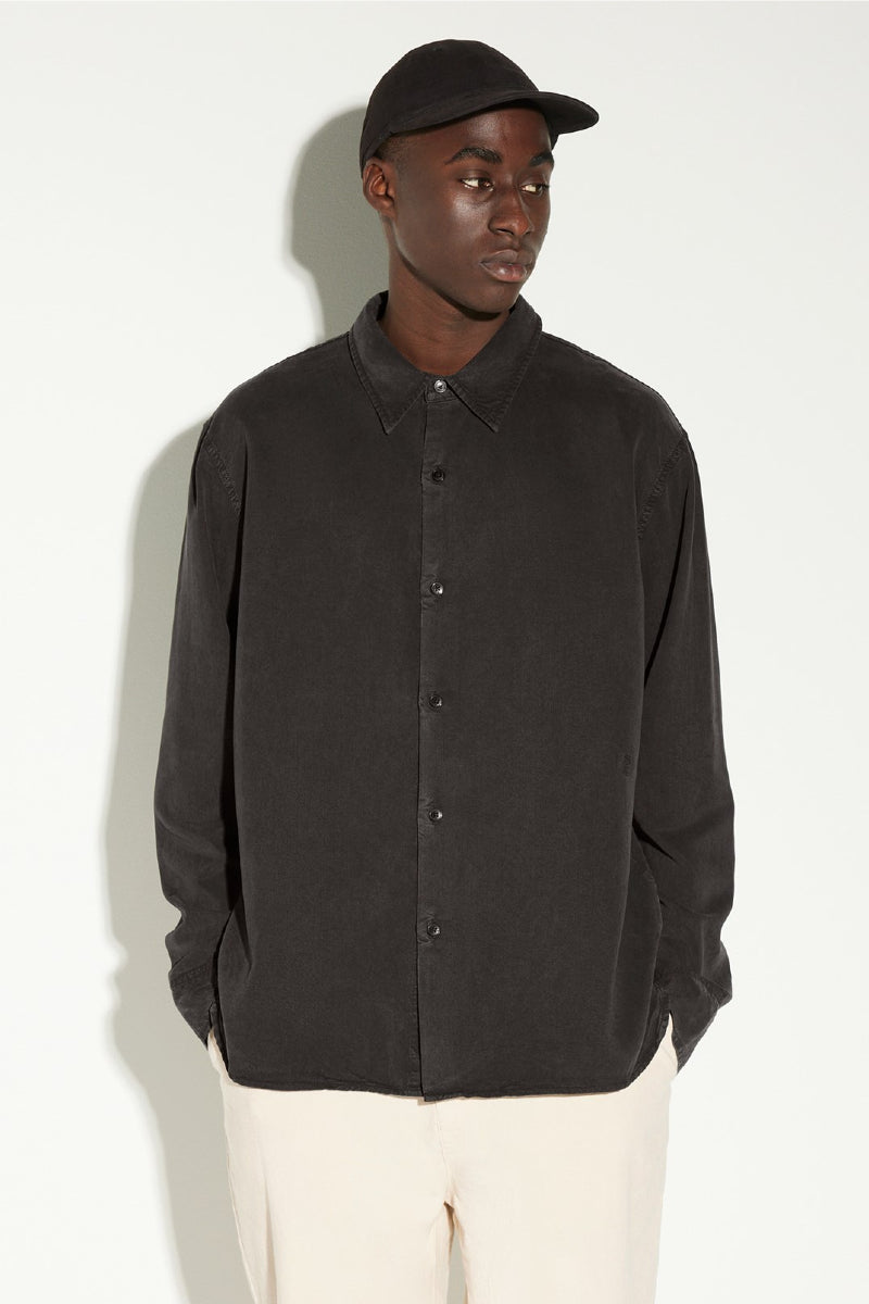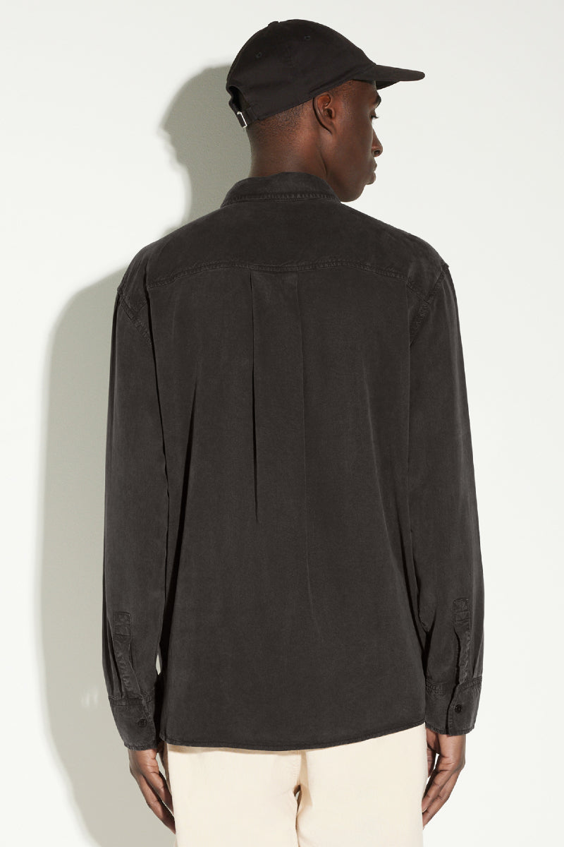 Rento kauluspaita pehmeästä ja kauniisti liikkuvasta materiaalista. Rento silhuetti etunapituksella. Yksityiskohtina kaareva etuhelma, musta Elvine logokirjonta ja laskos selässä.