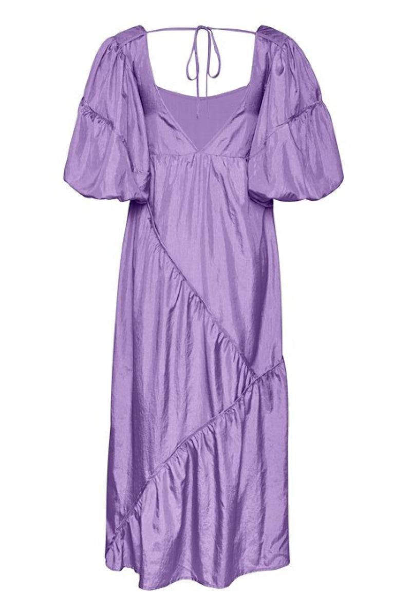 Upea mekko Gestuzilta. Mekko on A-linjainen malliltaan ja siinä on puolipitkät hihat. Mekossa on avoin selkä ja niskaan solmittavat nauhat.