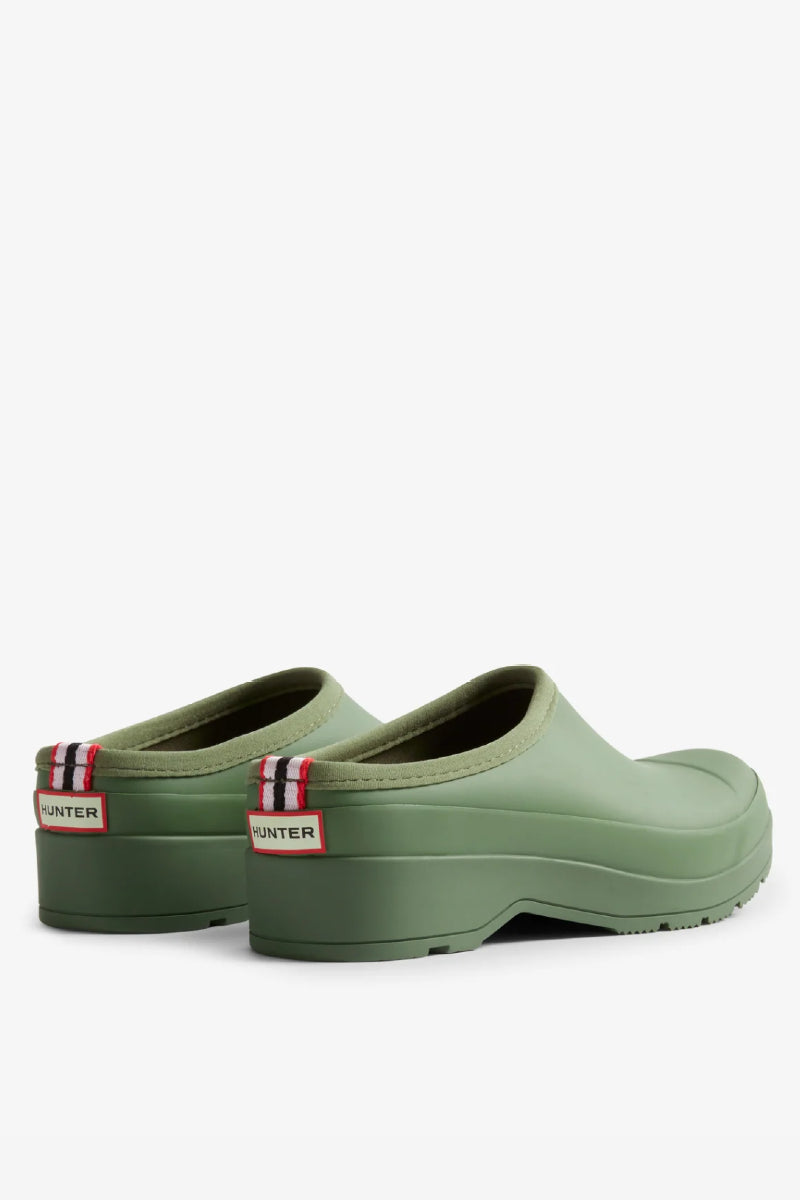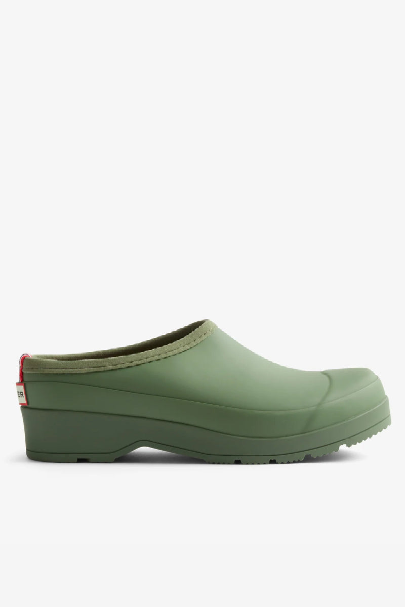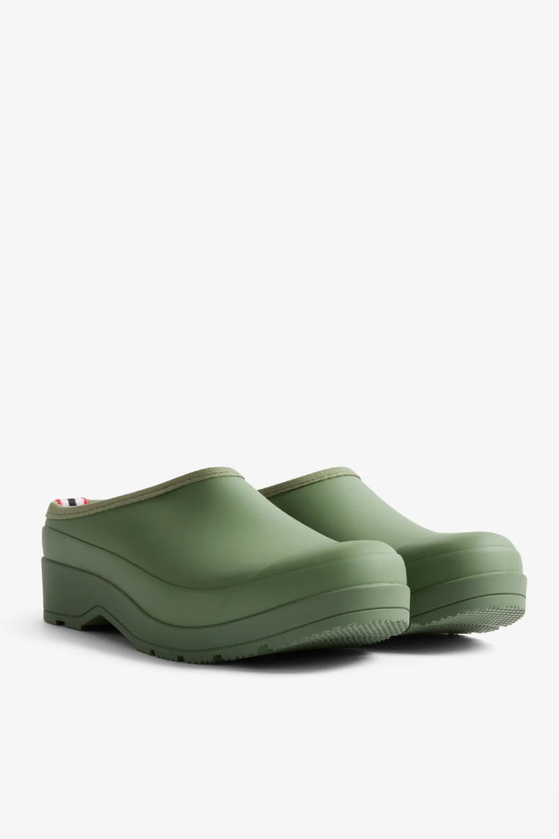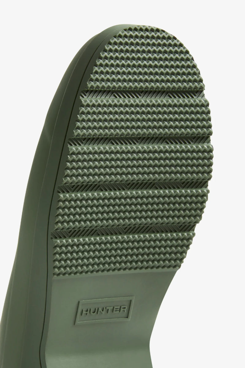 Korkealaatuisesta luonnonkumista valmistettu clog-mallinen kenkä mattapinnalla. Kenkä on täysin vedenpitävä ja siinä on kevyeksi suunniteltu rakenne sekä minimalistinen siluetti. Käyttömukavuutta lisää kierrätyspolyesteristä valmistettu pohjallinen sekä sisäpohja. Yksityiskohtana takaosan Hunter-logo. Kenkä toimii loistavasti sekä sisä- että ulkokäytössä lämpimillä keleillä.